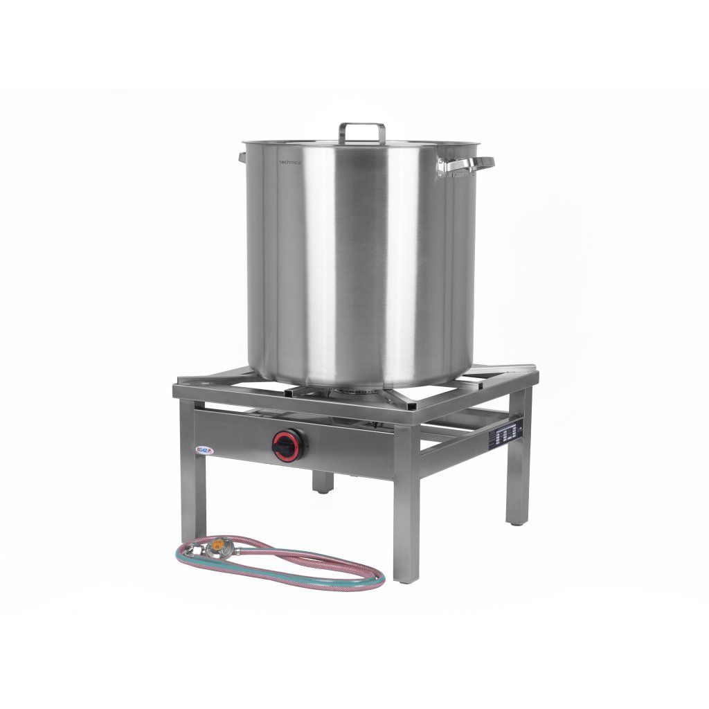 [Plynová kamna 600x600x350 mm, 7,2 kW + regulátor tlaku s hadicí (G30), 2000 mm + 98,2 l vysoký hrnec, 500 mm s víkem