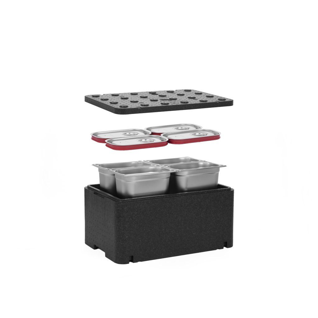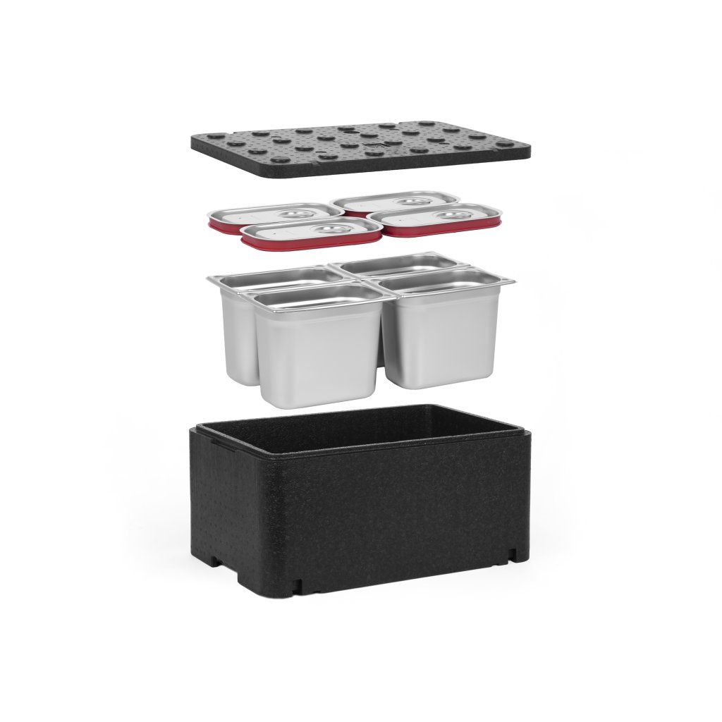[Sada] 250 mm Essential Line GN 1/1 izolovaná nádoba + 4x GN 1/4 nádoba, 200 mm, nerezová ocel + víka se silikonovým těsněním