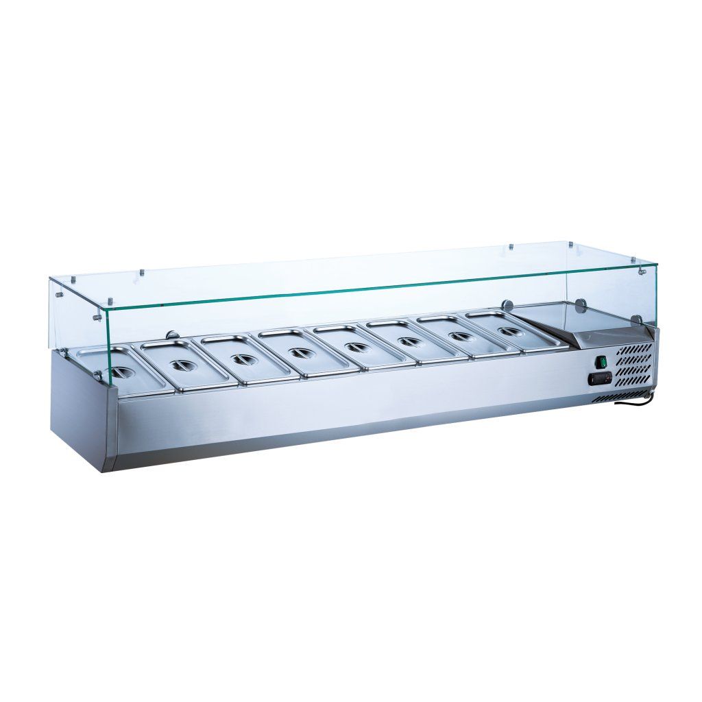 [Sada] 8xGN1/4 chladicí deska, 1800x335x435 mm + 8x GN 1/4 nádoba 150 mm z nerezové oceli s víkem