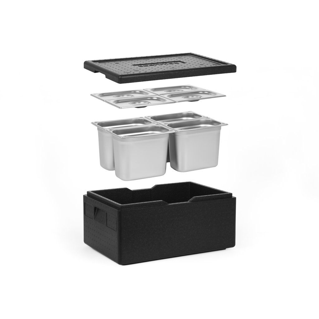 Izolovaný kontejner Technica v kombinaci s kontejnery Technica GN představuje kompletní řešení, které poskytuje nejen vynikající vlastnosti z hlediska udržování vysokých nebo nízkých teplot přepravovaných potravin, ale také nejvyšší standardy hygieny a ergonomie. Doporučujeme používat naše předdefinované sady, abyste 100% využili možnosti, které náš kontejner nabízí.