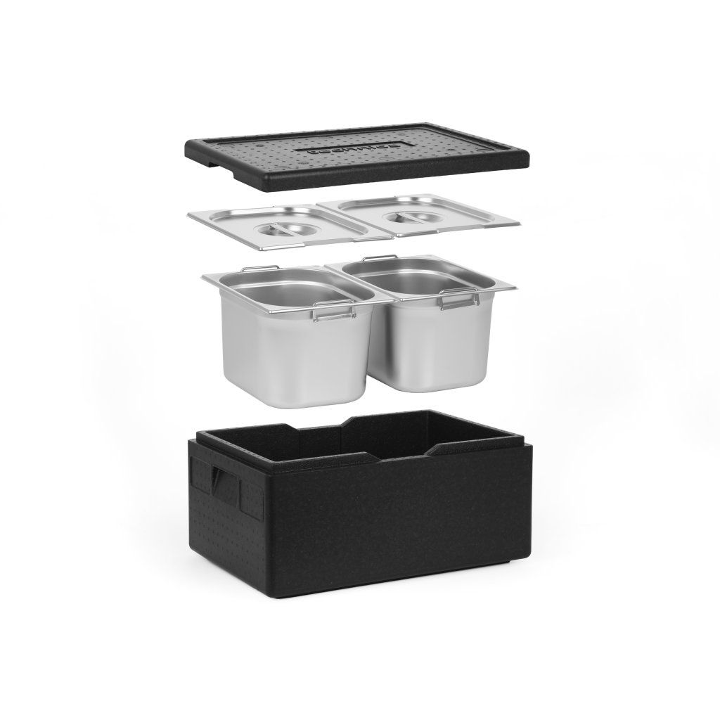 Izolovaný kontejner Technica v kombinaci s kontejnery Technica GN představuje kompletní řešení, které poskytuje nejen vynikající vlastnosti z hlediska udržování vysokých nebo nízkých teplot přepravovaných potravin, ale také nejvyšší standardy hygieny a ergonomie. Doporučujeme používat naše předdefinované sady, abyste 100% využili možnosti, které náš kontejner nabízí.