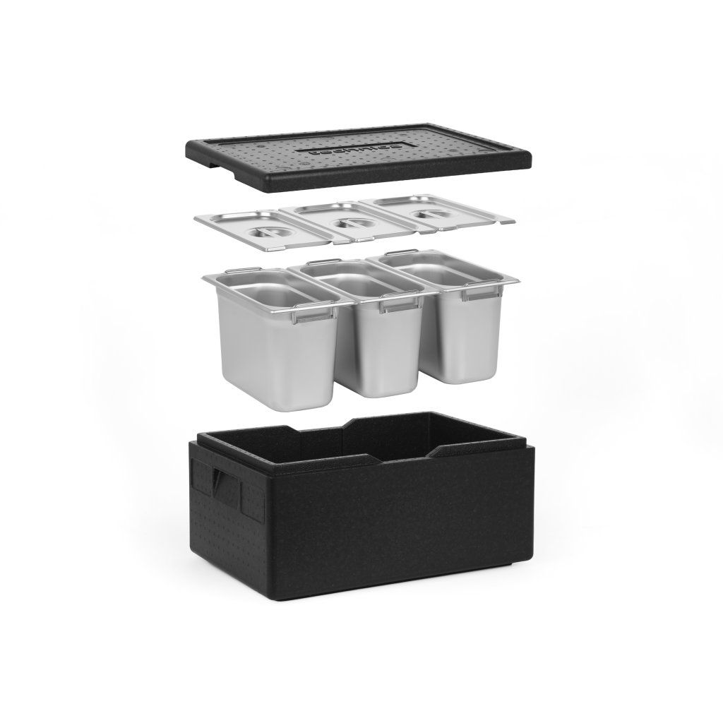 Izolovaný kontejner Technica v kombinaci s kontejnery Technica GN představuje kompletní řešení, které poskytuje nejen vynikající vlastnosti z hlediska udržování vysokých nebo nízkých teplot přepravovaných potravin, ale také nejvyšší standardy hygieny a ergonomie. Doporučujeme používat naše předdefinované sady, abyste 100% využili možnosti, které náš kontejner nabízí.
