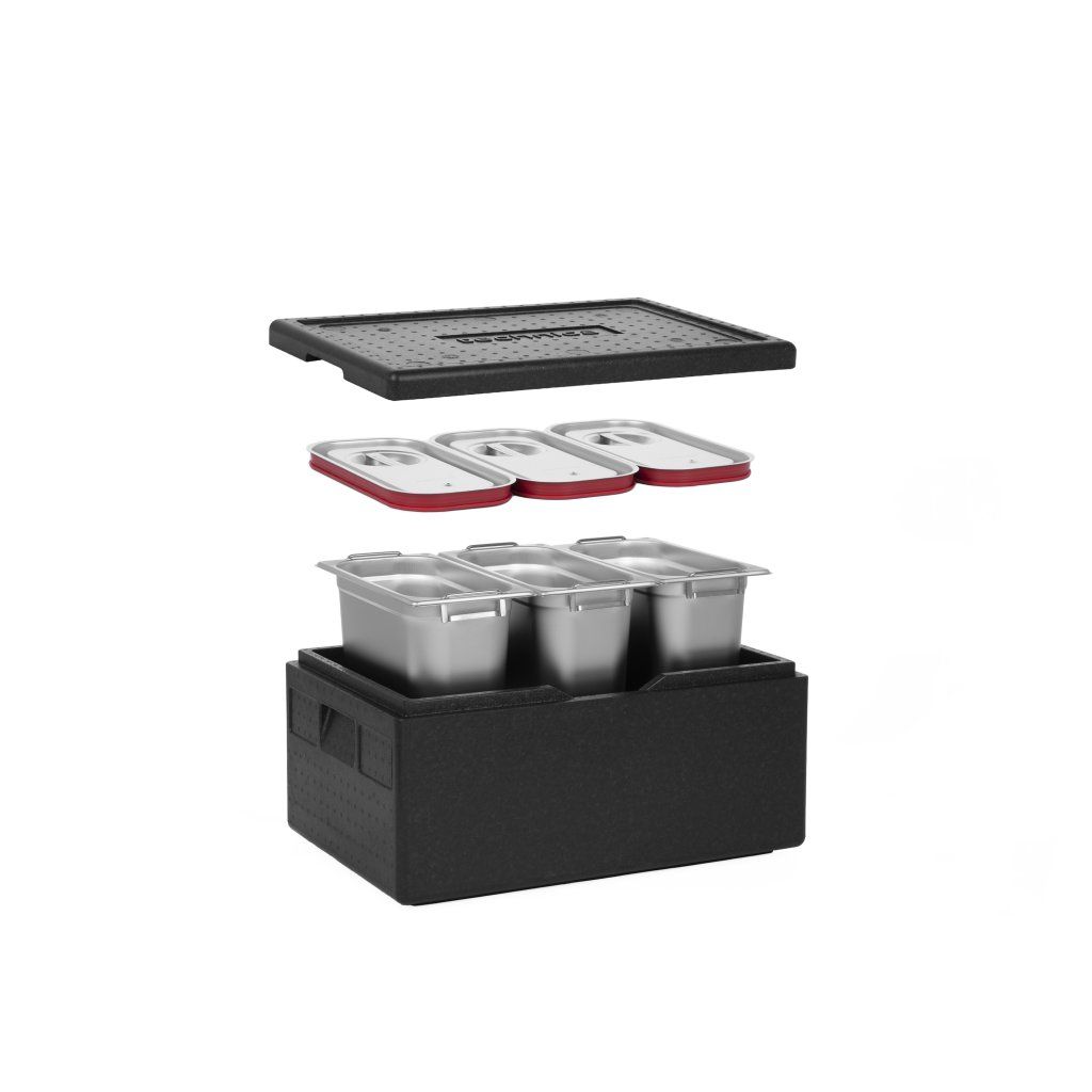 Izolovaný kontejner Technica v kombinaci s kontejnery Technica GN představuje kompletní řešení, které poskytuje nejen vynikající vlastnosti z hlediska udržování vysokých nebo nízkých teplot přepravovaných potravin, ale také nejvyšší standardy hygieny a ergonomie. Doporučujeme používat naše předdefinované sady, abyste 100% využili možnosti, které náš kontejner nabízí.