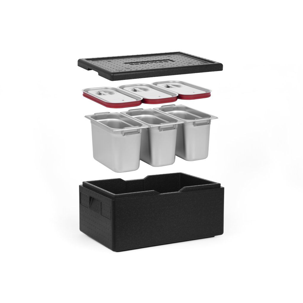 [Sada] Izolovaná nádoba GN 1/1 200 mm + 3x nádoba GN 1/3, 200 mm, s uchy, z nerezové oceli + víka se silikonovým těsněním