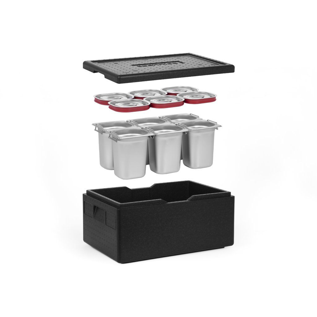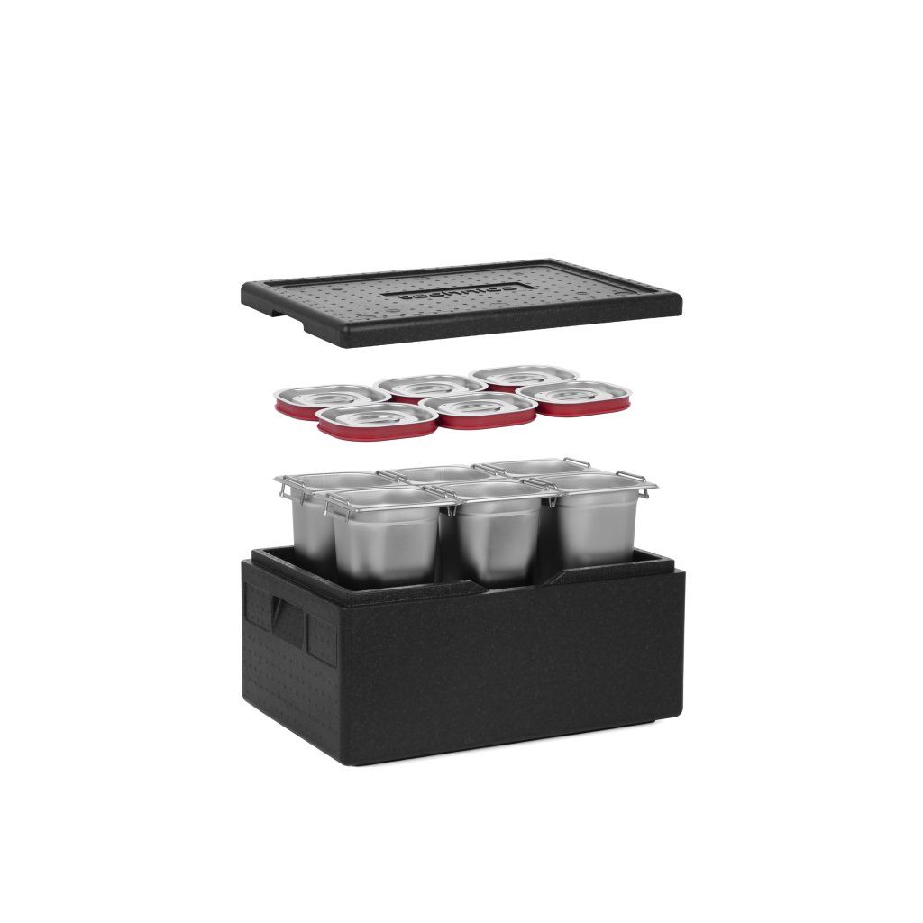 Izolovaný kontejner Technica v kombinaci s kontejnery Technica GN představuje kompletní řešení, které poskytuje nejen vynikající vlastnosti z hlediska udržování vysokých nebo nízkých teplot přepravovaných potravin, ale také nejvyšší standardy hygieny a ergonomie. Doporučujeme používat naše předdefinované sady, abyste 100% využili možnosti, které náš kontejner nabízí.