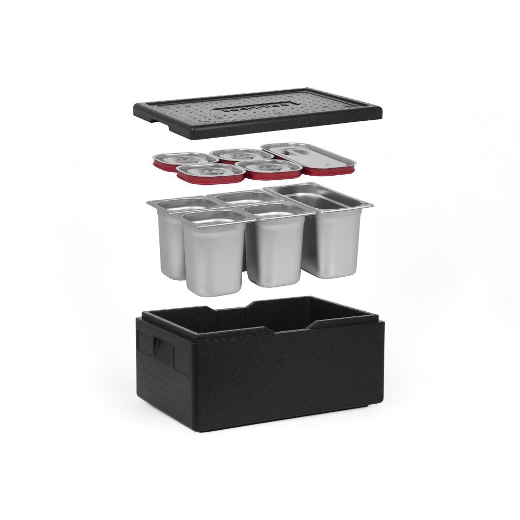 Izolovaný kontejner Technica v kombinaci s kontejnery Technica GN představuje kompletní řešení, které poskytuje nejen vynikající vlastnosti z hlediska udržování vysokých nebo nízkých teplot přepravovaných potravin, ale také nejvyšší standardy hygieny a ergonomie. Doporučujeme používat naše předdefinované sady, abyste 100% využili možnosti, které náš kontejner nabízí.
