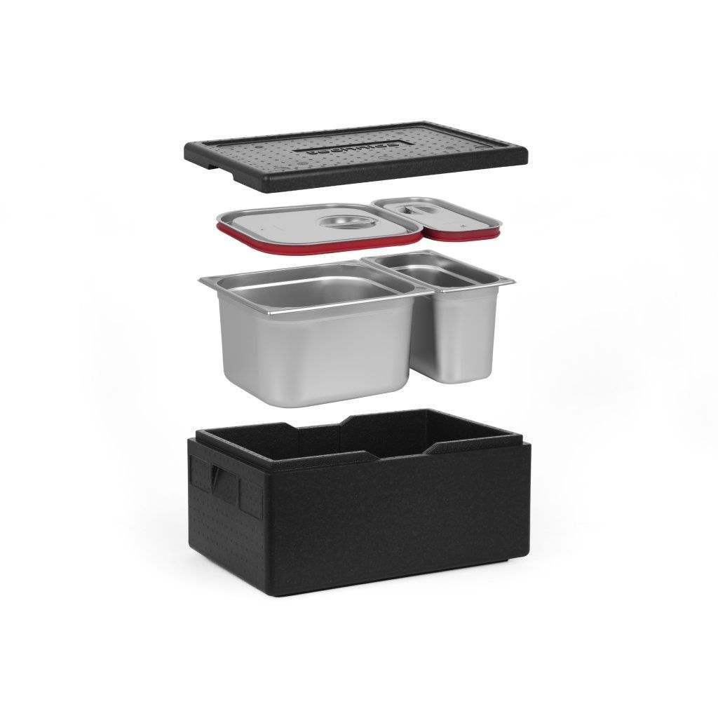 Izolovaný kontejner Technica v kombinaci s kontejnery Technica GN představuje kompletní řešení, které poskytuje nejen vynikající vlastnosti z hlediska udržování vysokých nebo nízkých teplot přepravovaných potravin, ale také nejvyšší standardy hygieny a ergonomie. Doporučujeme používat naše předdefinované sady, abyste 100% využili možnosti, které náš kontejner nabízí.