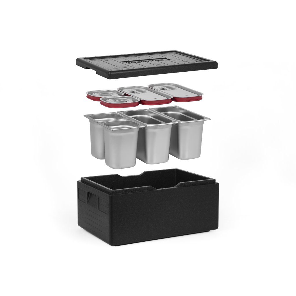 Izolovaný kontejner Technica v kombinaci s kontejnery Technica GN představuje kompletní řešení, které poskytuje nejen vynikající vlastnosti z hlediska udržování vysokých nebo nízkých teplot přepravovaných potravin, ale také nejvyšší standardy hygieny a ergonomie. Doporučujeme používat naše předdefinované sady, abyste 100% využili možnosti, které náš kontejner nabízí.