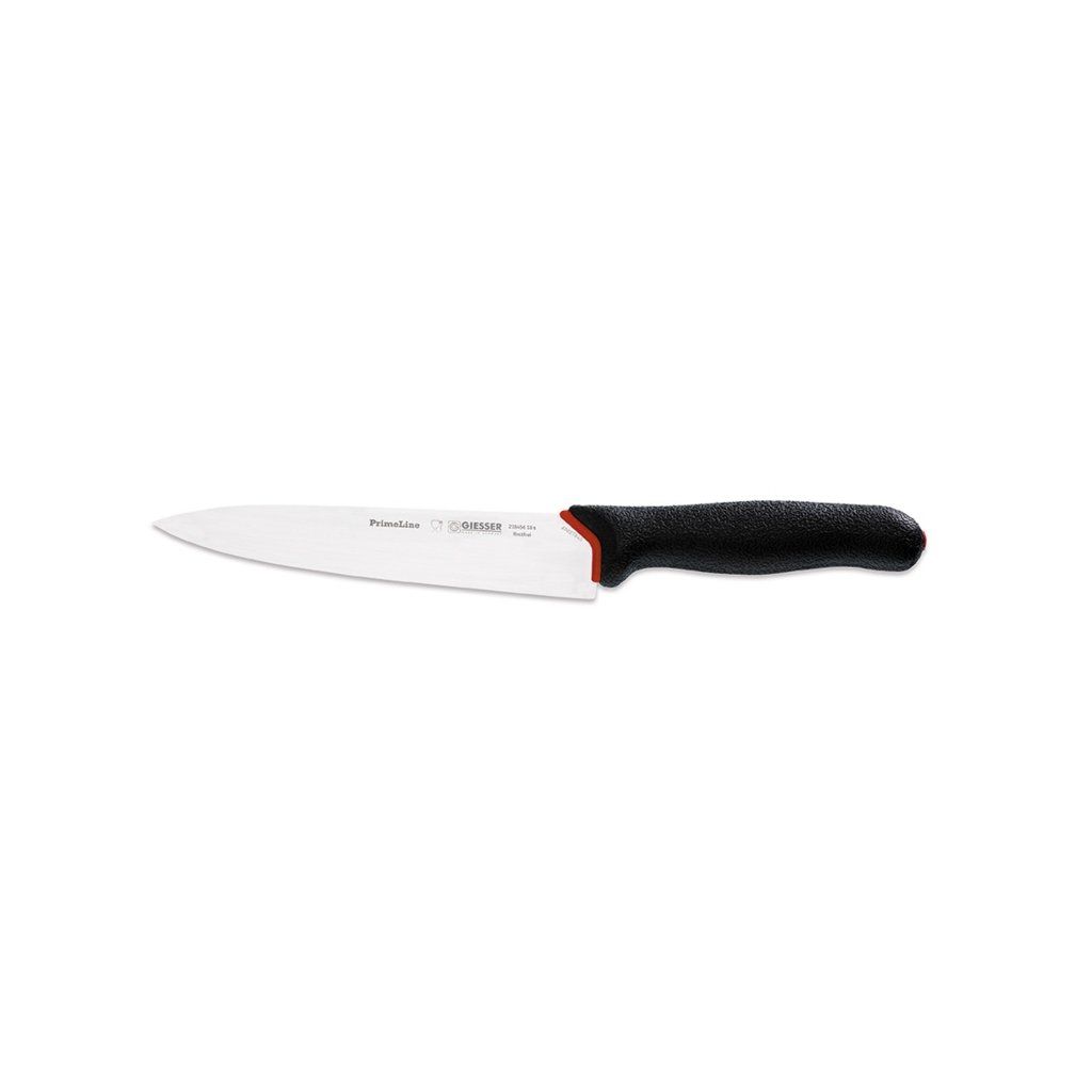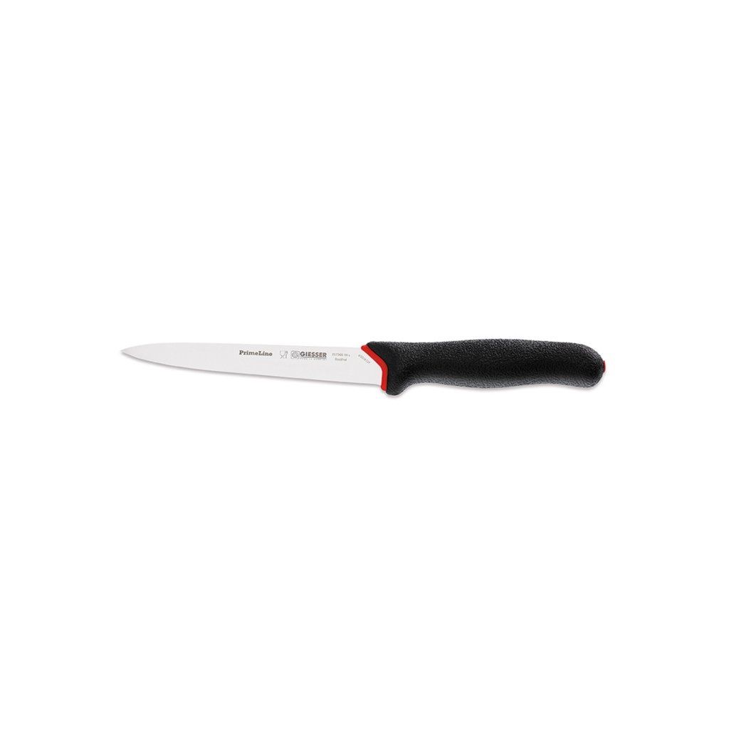 Aby nože řady PrimeLine měly zvláštní vlastnosti, vzorem byla příroda - ergonomie, hygiena, ostrost a neklouzavost. Díky různým tvarům a délkám čepelí, pružnému nebo tvrdému ostří, krátkému nebo dlouhému ochrannému nosu u rukojeti je řada PrimeLine ideální pro jakýkoli druh práce, ať už v gastronomii nebo při zpracování masa a potravin. Měkký přilnavý povrch s tvrdým plastovým jádrem zaručuje stabilní a přesnou práci. Vyvážené proporce nože PrimeLine jsou rozhodující pro dosažení dokonalé rovnováhy mezi čepelí a rukojetí, takže krájení probíhá bez námahy a nezpůsobuje únavu rukou. Díky optimálně tvarované a zaoblené rukojeti s ochranným nosem nože PrimeLine dokonale padnou do ruky a šetří šlachy a klouby. Na dotek příjemný měkký plast pouzdra rukojeti byl ergonomicky tvarován a dokonale se přizpůsobí ruce. Textura povrchu zajišťuje bezpečné uchopení i v mokrých rukou a poskytuje optimální vedení řezu. Riziko vyklouznutí je výrazně sníženo, čímž se předchází zraněním. Při výrobě PrimeLine se používají pouze pečlivě zpracované materiály nejvyšší kvality. Čím rovnoměrnější je kalení, tím větší je odolnost čepele proti opotřebení. Z tohoto důvodu se používá nejmodernější technologie na světě: vakuové tepelné zpracování. Dokonalé broušení a závěrečné ruční ostření zaručují dlouhou životnost a zajišťují mimořádnou ostrost čepele. Antibakteriální účinek stříbra je znám již po staletí. Sanitární rukojeti potažené stříbrem spolehlivě a trvale snižují šíření bakterií a riziko kontaminace. Sanitizované stříbro zaručuje optimální hygienu při zpracování masa a potravin, splňuje přísné požadavky nařízení o potravinách a spotřebním zboží, je antialergické a dermatologicky testované.
