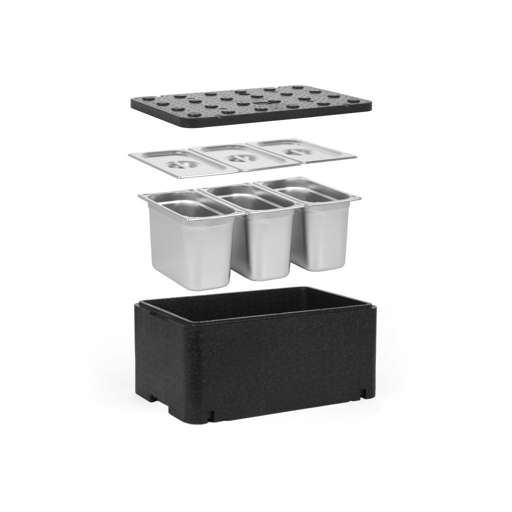 [Sada] Nádoba GN 1/1 250 mm Essential Line + 3x nádoba GN 1/3, 200 mm, nerezová ocel + víka