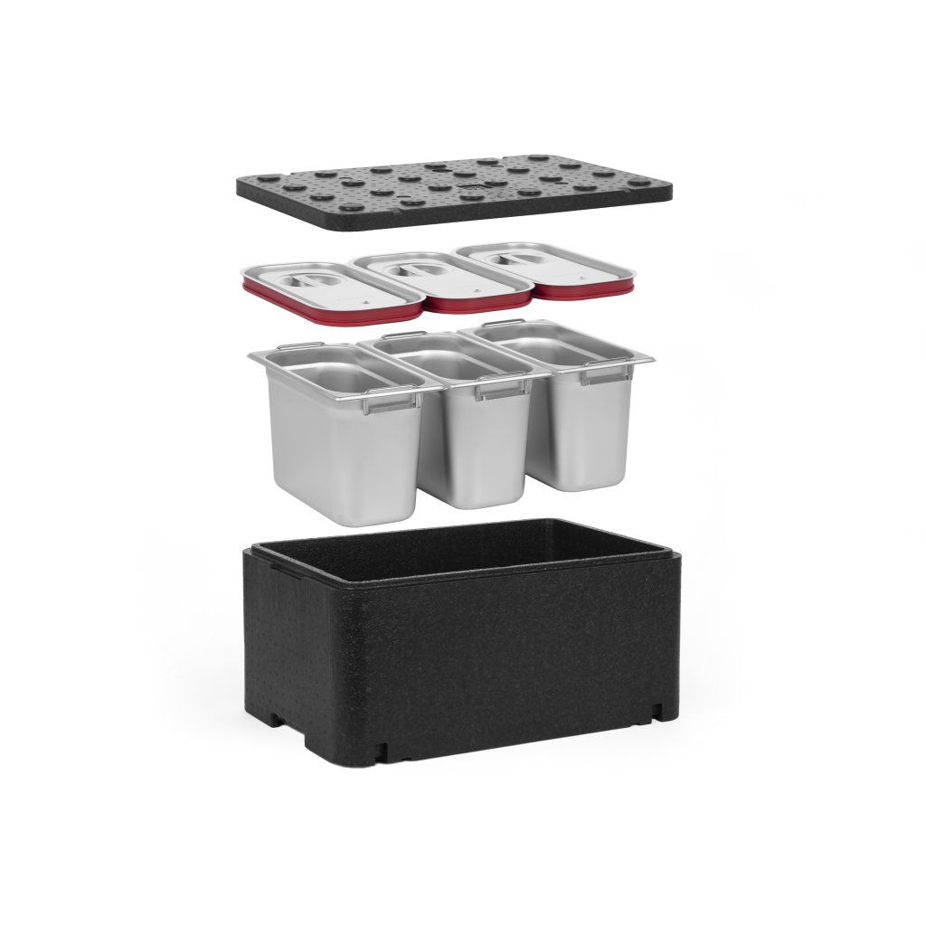 Izolovaný kontejner Technica v kombinaci s kontejnery Technica GN představuje kompletní řešení, které poskytuje nejen vynikající vlastnosti z hlediska udržování vysokých nebo nízkých teplot přepravovaných potravin, ale také nejvyšší standardy hygieny a ergonomie. Doporučujeme používat naše předdefinované sady, abyste 100% využili možnosti, které náš kontejner nabízí.