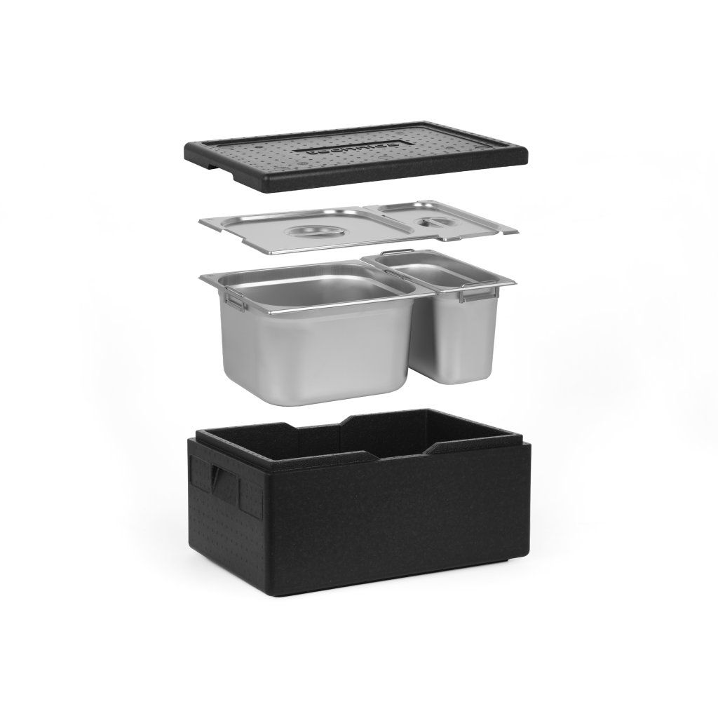 Izolovaný kontejner Technica v kombinaci s kontejnery Technica GN představuje kompletní řešení, které poskytuje nejen vynikající vlastnosti z hlediska udržování vysokých nebo nízkých teplot přepravovaných potravin, ale také nejvyšší standardy hygieny a ergonomie. Doporučujeme používat naše předdefinované sady, abyste 100% využili možnosti, které náš kontejner nabízí.