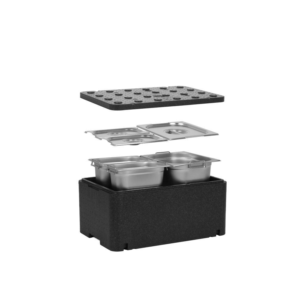 Izolovaný kontejner Technica v kombinaci s kontejnery Technica GN představuje kompletní řešení, které poskytuje nejen vynikající vlastnosti z hlediska udržování vysokých nebo nízkých teplot přepravovaných potravin, ale také nejvyšší standardy hygieny a ergonomie. Doporučujeme používat naše předdefinované sady, abyste 100% využili možnosti, které náš kontejner nabízí.