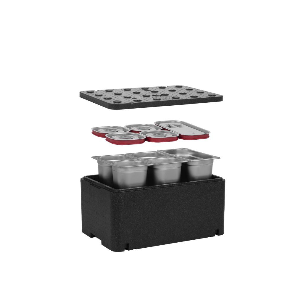 Izolovaný kontejner Technica v kombinaci s kontejnery Technica GN představuje kompletní řešení, které poskytuje nejen vynikající vlastnosti z hlediska udržování vysokých nebo nízkých teplot přepravovaných potravin, ale také nejvyšší standardy hygieny a ergonomie. Doporučujeme používat naše předdefinované sady, abyste 100% využili možnosti, které náš kontejner nabízí.