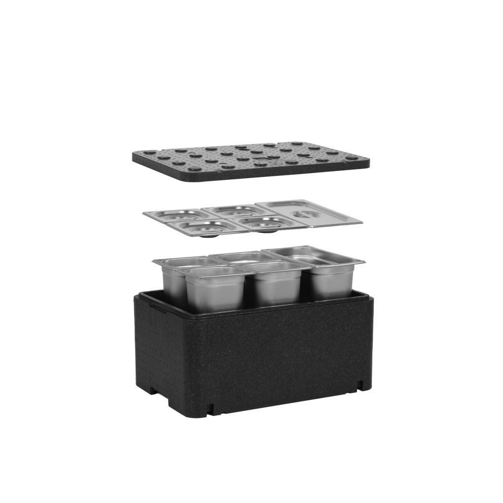 Izolovaný kontejner Technica v kombinaci s kontejnery Technica GN představuje kompletní řešení, které poskytuje nejen vynikající vlastnosti z hlediska udržování vysokých nebo nízkých teplot přepravovaných potravin, ale také nejvyšší standardy hygieny a ergonomie. Doporučujeme používat naše předdefinované sady, abyste 100% využili možnosti, které náš kontejner nabízí.