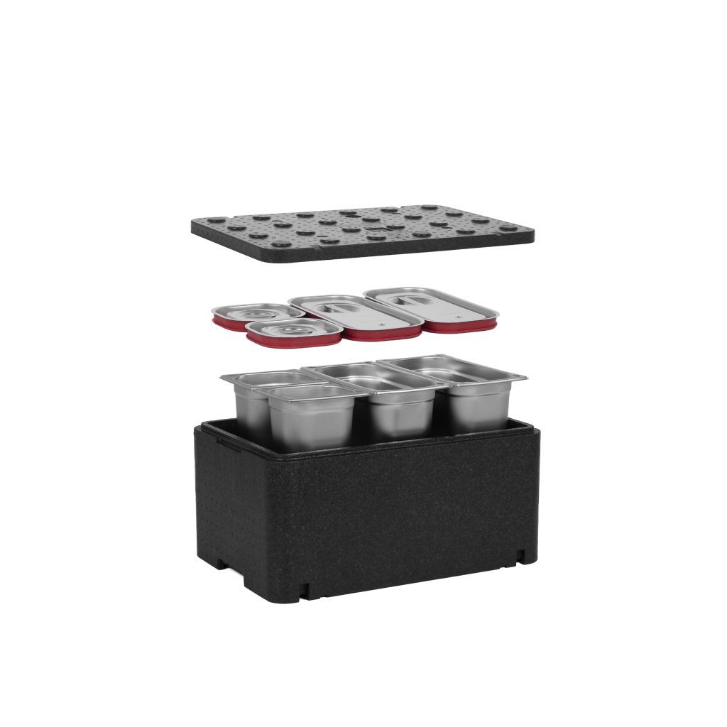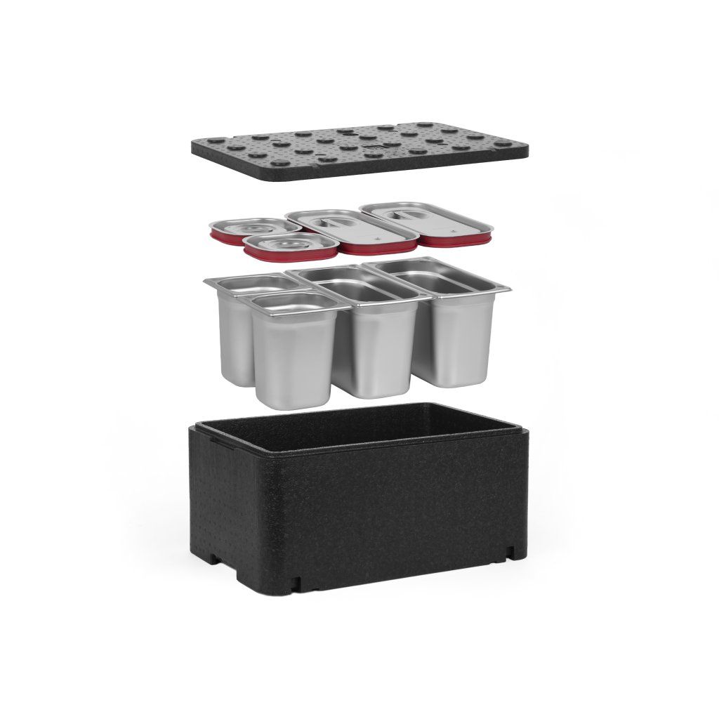 Izolovaný kontejner Technica v kombinaci s kontejnery Technica GN představuje kompletní řešení, které poskytuje nejen vynikající vlastnosti z hlediska udržování vysokých nebo nízkých teplot přepravovaných potravin, ale také nejvyšší standardy hygieny a ergonomie. Doporučujeme používat naše předdefinované sady, abyste 100% využili možnosti, které náš kontejner nabízí.