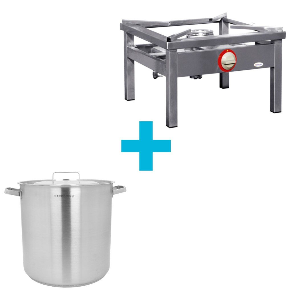[Set] 50,3 l vysoký hrnec o průměru 400 mm s víkem z nerezové oceli + plynová stolička 600x600x350 mm, 7,2 kW