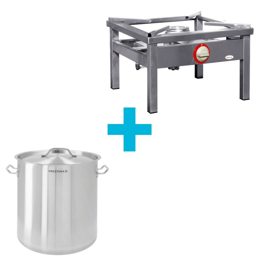 [Set] 50 l vysoký hrnec o průměru 400 mm s víkem z nerezové oceli + plynová stolička 600x600x350 mm, 7,2 kW