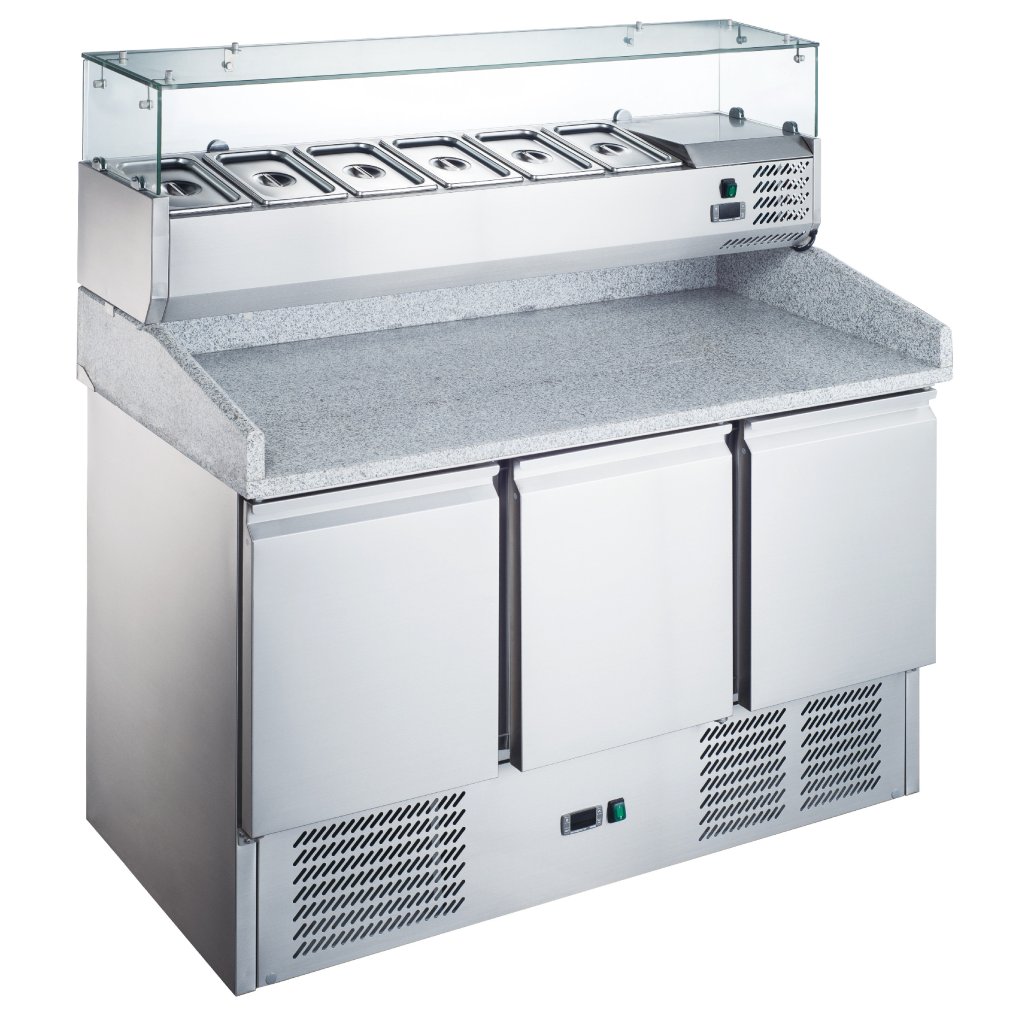 [Set] Třídveřový chlazený pizza stůl 368 l, 1400x700x850 mm | TECHNICA, Cold Line + chladicí nástavec 6xGN1/4, 1400x335x435 mm | TECHNICA, Cold Line