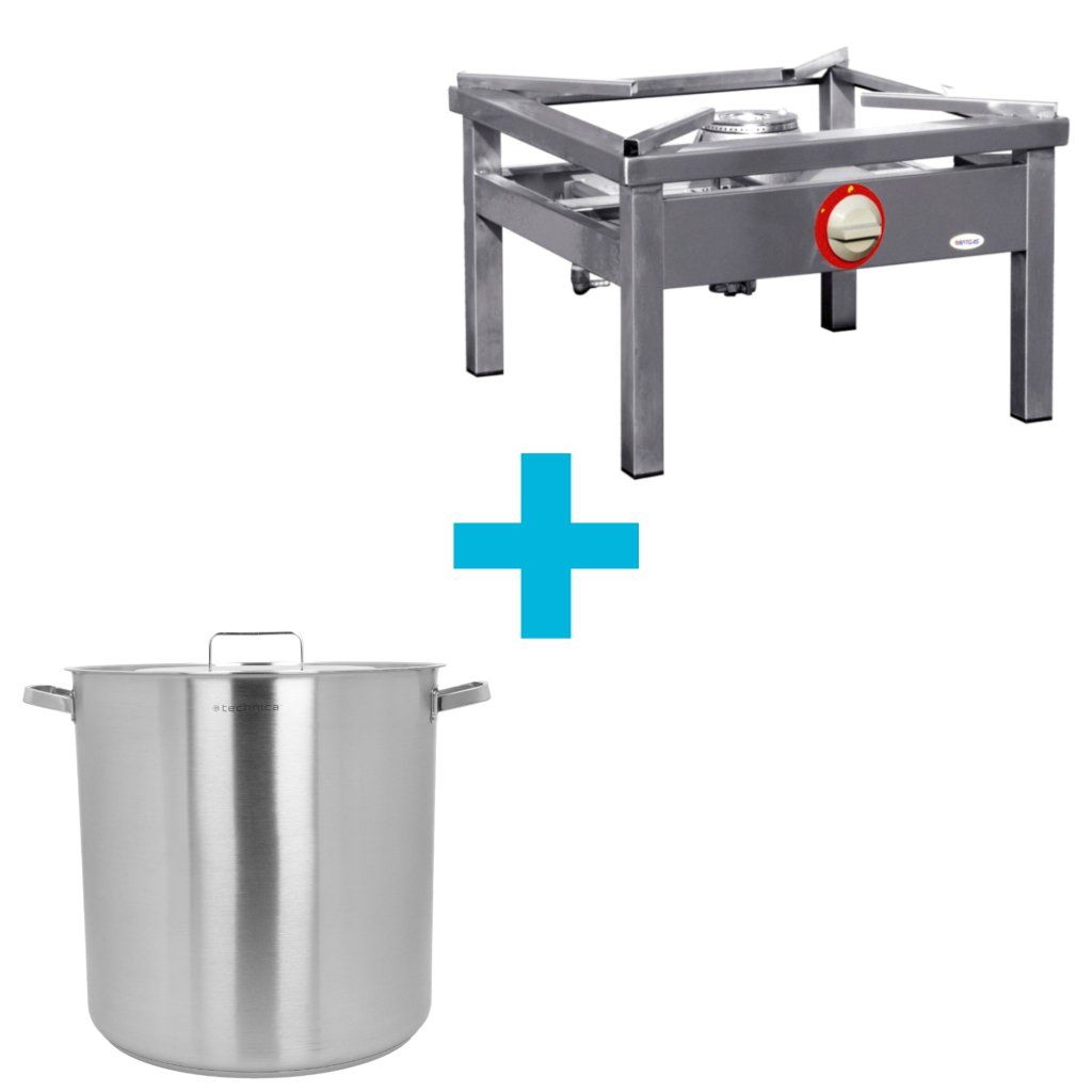 [Set] Vysoký hrnec o objemu 71,6 l a průměru 450 mm s víkem z nerezové oceli + plynová stolička 600x600x350 mm, 7,2 kW