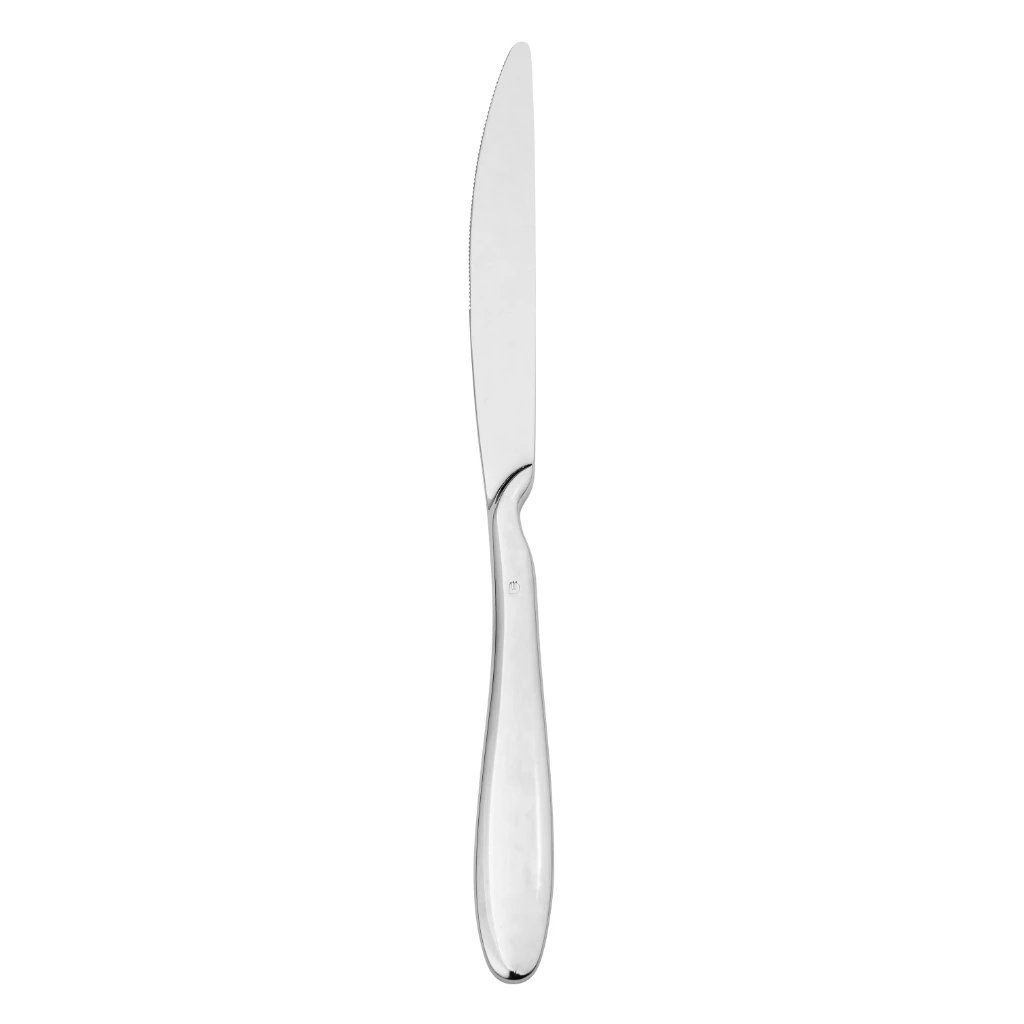 Moderní nůž z kolekce Anzo nesmí chybět v žádné stylové restauraci. Jeho originální design ozdobí každý stůl a nechává prostor pro rozmanitost. Specifický tvar vytváří místo na ukazováček, proto se drží mnohem lépe než ostatní nože. Na výrobu se používá nerezová ocel 18/10, která odolá korozi, a tak ho bez obav můžete umýt v myčce. Další výhodou materiálu je i vysoká odolnost – ta garantuje dlouholetou výdrž i při každodenním používání.Nůž jídelní 23,5 cm