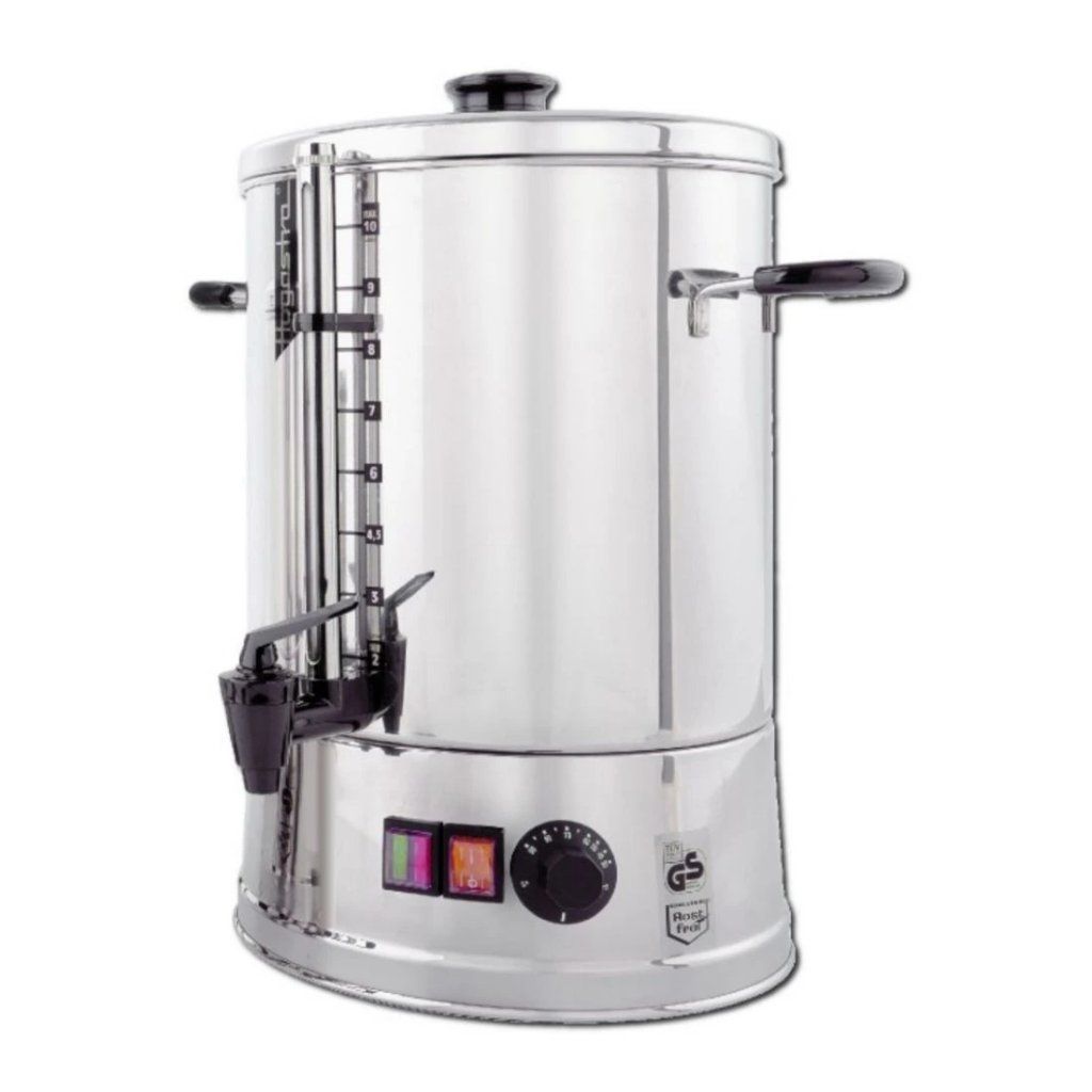 Výrobník horké vody je perfektní volbou do rušných provozů, kde potřebujete rychle ohřát velké množství vody a udržet ji stále teplou. Nádoba svůj obsah ohřívá za pomocí topné spirály. Ta nepřichází do kontaktu s vodou a díky tomu se tak výrazně zvyšuje životnost výrobníku.Automat na horkou vodu 6 l