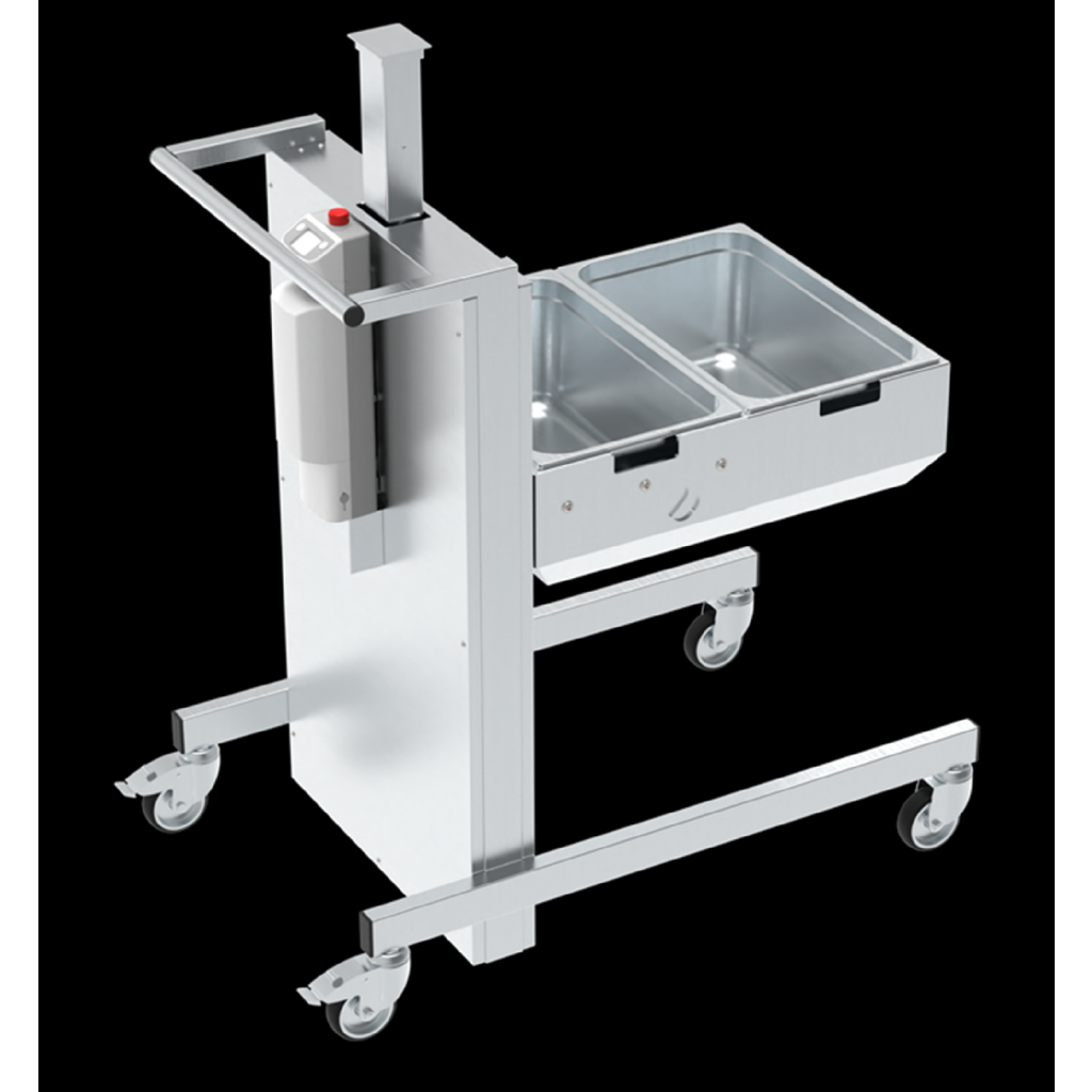 Automatický zvedací vozík AZV 2/1GN je moderní a praktický pomocník pro profesionální kuchyně. Umožňuje snadnou manipulaci s horkými pokrmy, jejich vypouštění nebo přelévání přímo do GN nádob. Díky automatickému motorickému zdvihu a mobilní konstrukci zvyšuje efektivitu a bezpečnost při práci.
