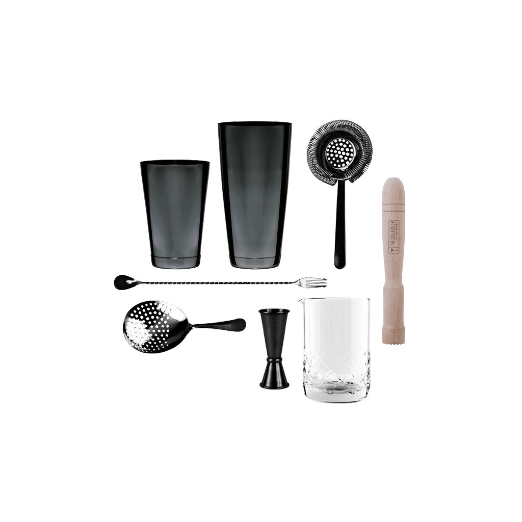 Barmanská sestava v černé barvě se hodí do každého baru pro přípravu míchaných drinků a jiných nápojů.Set obsahuje: