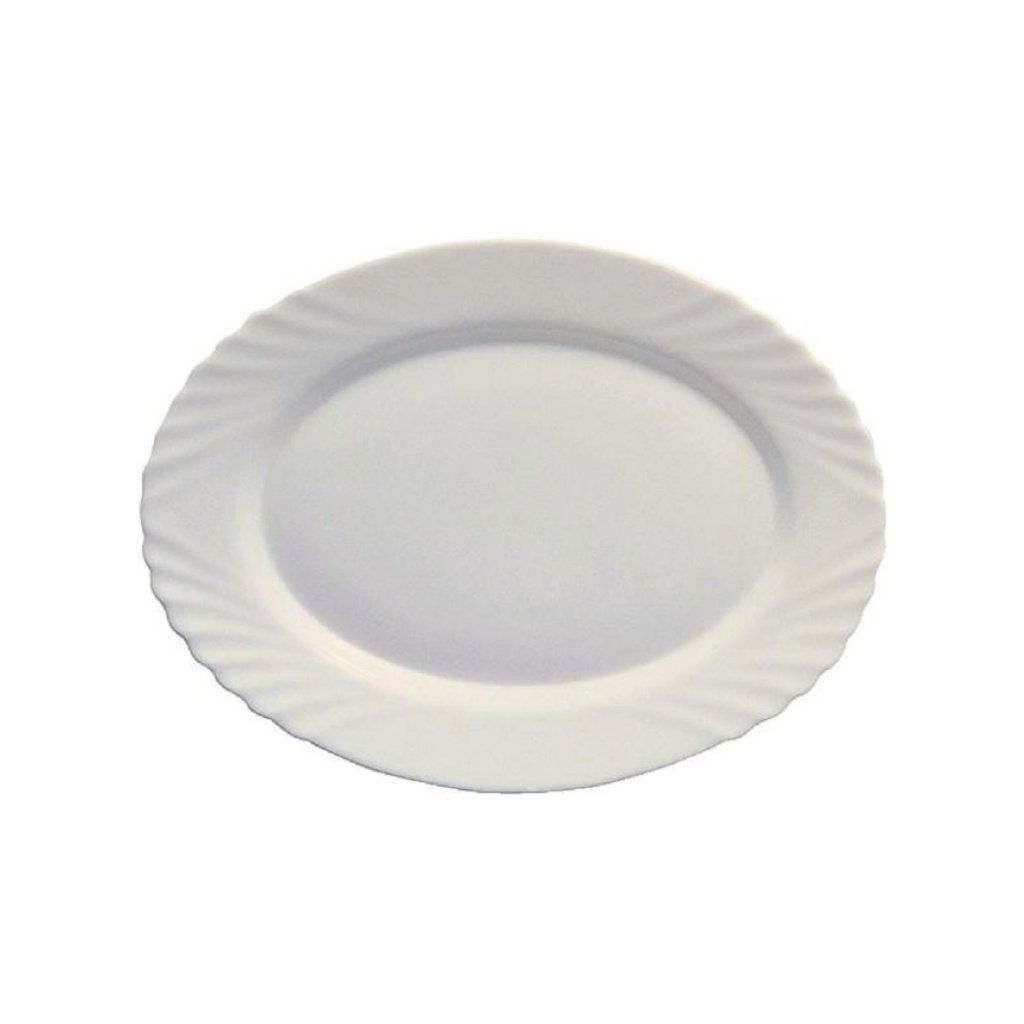 Tento talíř se vyrábí z opálového skla, které je lehké, odolné proti otlučení a může se ohřívat i v mikrovlnce a mýt v myčce nádobí. Jednoduchý design talíře se bude vyjímat jak v moderních, tak i tradičních interiérech.Talíř oválný pr. 36 cm