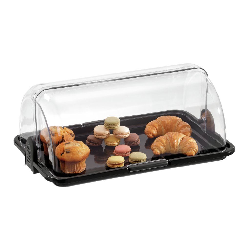 Průhledné víko Rolltop zajišťuje oboustrannou obsluhu i okamžitý přehled o nabízených dobrotách, což podporuje atraktivní prezentaci při samoobslužném i obslužném prodeji.