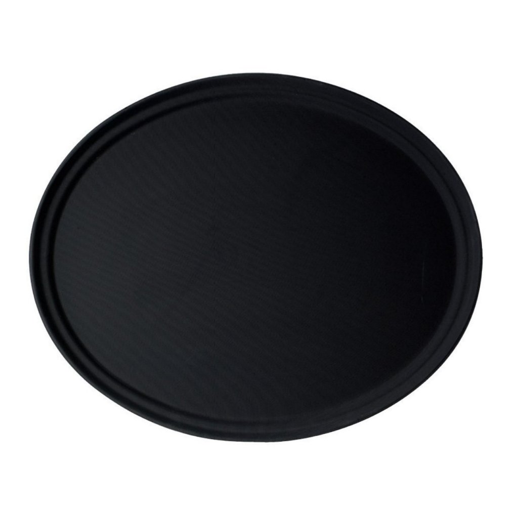 Tento oválný podnos v černém provedení se hodí pro cateringové společnosti, hotelové pokojové služby a bankety, kde se manipuluje s těžkým nádobím. Díky protiskluzové povrchové úpravě pomáhá podnos vašim hostům v tom, aby jim nesené jídlo neklouzalo a lépe se jim tak s plným podnosem manipulovalo. Je parádně stohovatelný, takže se dobře skladuje. Vhodný do myček na nádobí a do teploty max. 100 °C.Podnos protiskluzový oválný 73,5 × 60 cm, černá