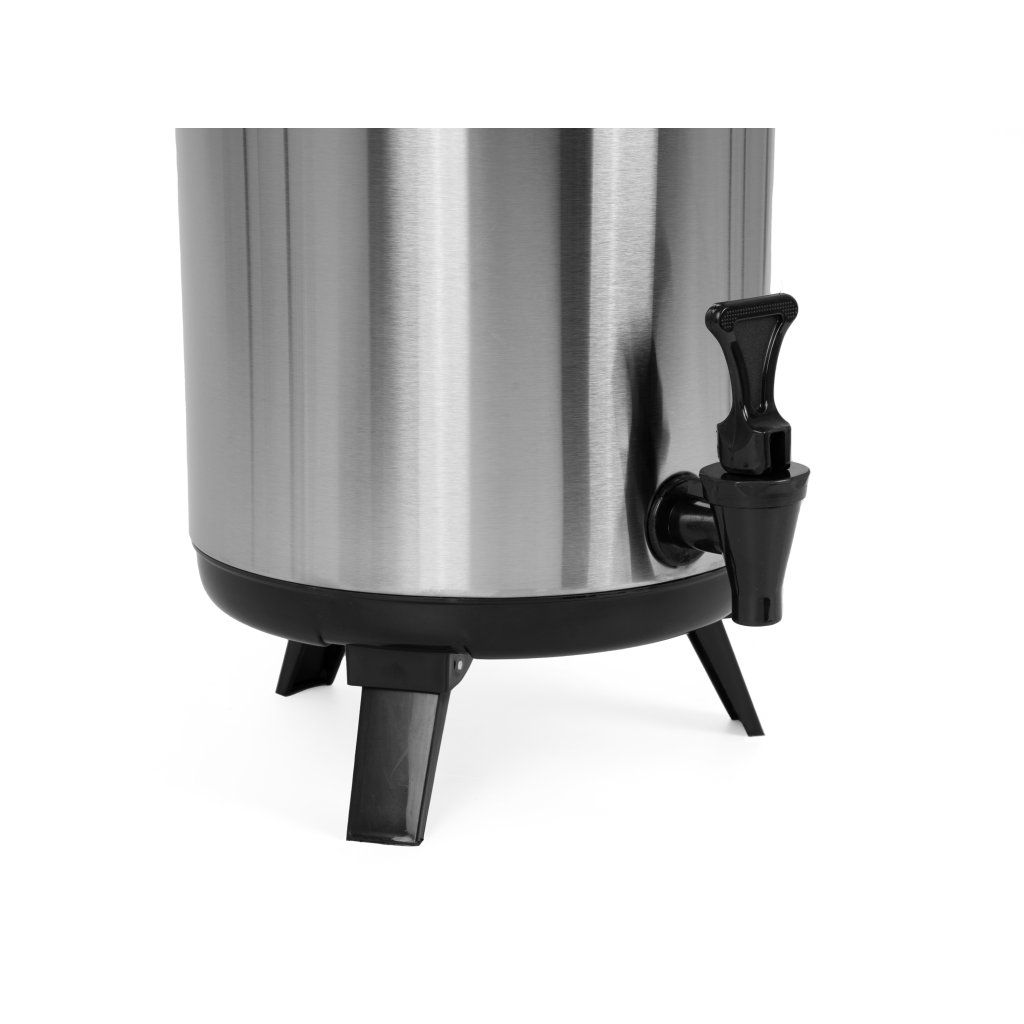 Cateringová termoska je ideální pro přepravu a uchovávání teplých i studených nápojů. Vyrobeno z nerezové oceli s plastovou baterií. Skládací nožičky usnadňují přenášení a skladování a šroubovací víko umožňuje pohodlné plnění. Výška termosky se složenými nožičkami je 465 mm a s rozloženými nožičkami 525 mm.Doplňkové parametry