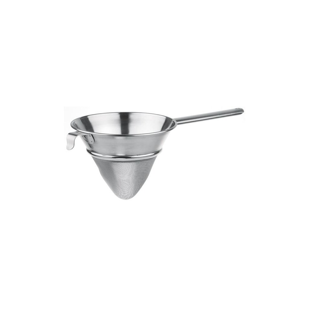 Cedník špičák se sítem s hustotou 9 otvorů na 10 mm². Vyrobeno z nerezové oceli. Úchyt dlouhý 250 mm. Cedník má také praktický hák na zavěšení v hrnci.Doplňkové parametry