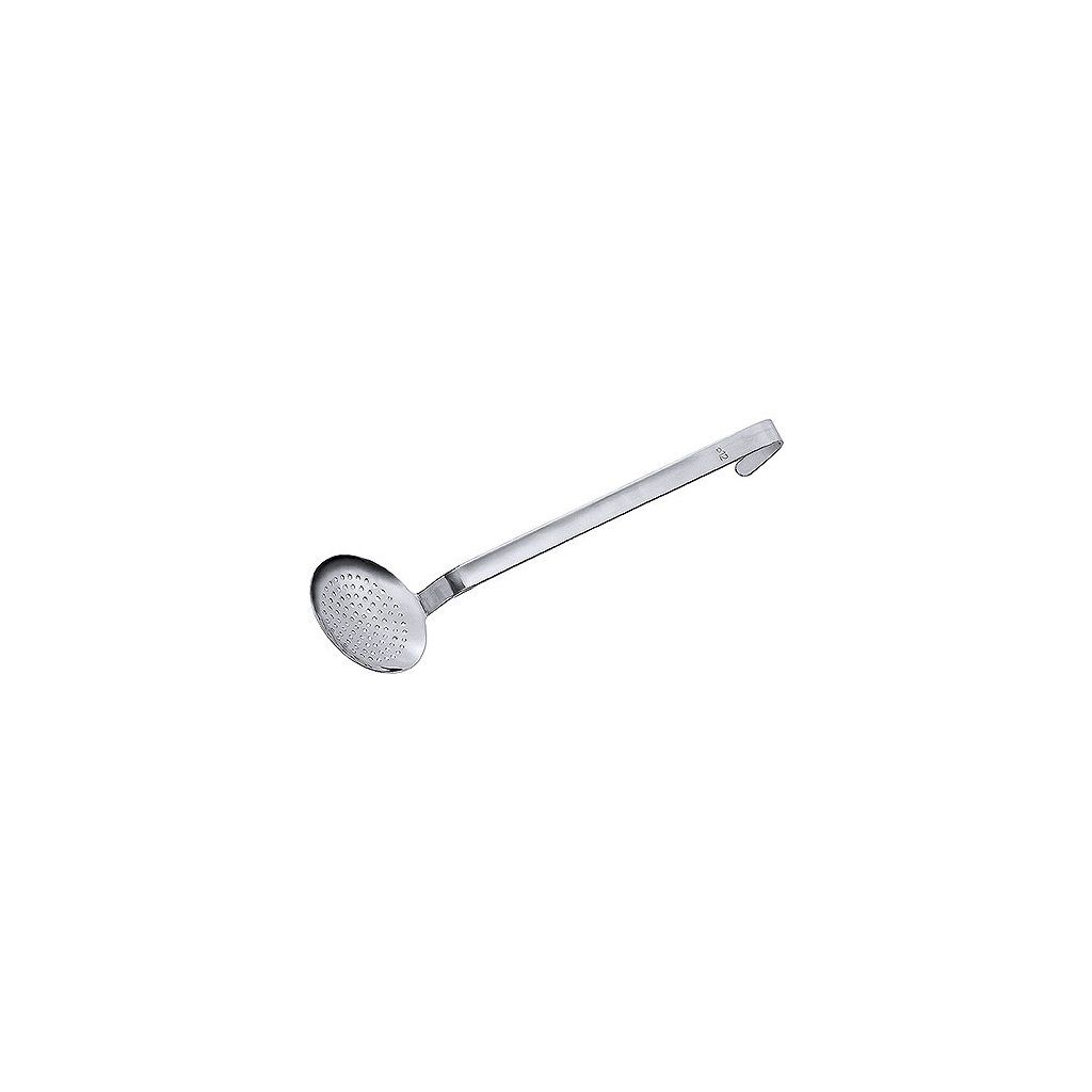 Cedníková lžíce monoblok vyrobená z leštěné nerezové oceli se širokým, saténovým úchytem. Perforace 4 mm.Doplňkové parametry