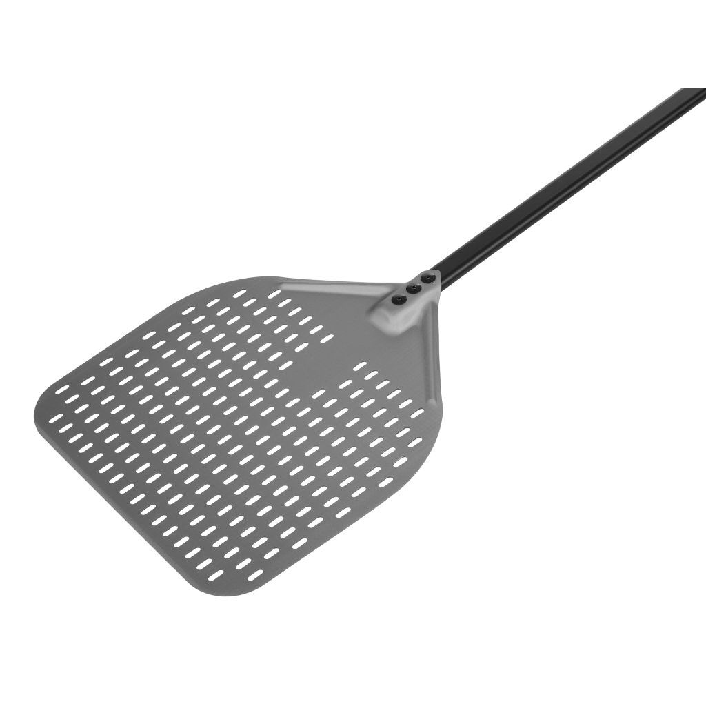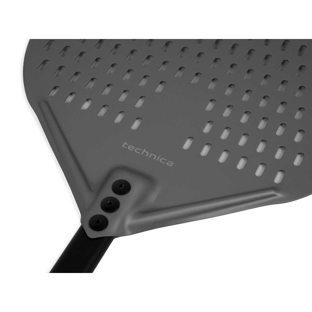 Černá, perforovaná lopata na pizzu z anodového hliníku s hliníkovým úchytem, čtvercová, 355x405x1500 mm | TECHNICA, Pizza Line