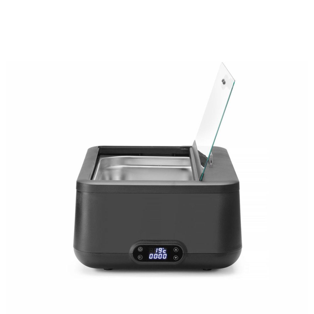 Stylový a funkční design od nizozemského designéra Roberta Bronwassera.Tělo je vyrobeno z polypropylenu odolného vůči vysokým teplotám.Vyjímatelná nádoba GN1/1 (H)100 mm z nerezové oceli AISI 304, snadno se čistí.Topné těleso vyrobené z nerezové oceli AISI 304 a umístěné v nádobě na vodu pro účinný přenos tepla.Víko z tvrzeného skla s izolovanou rukojetí a hliníkovým závěsem.Integrovaný držák karet na víku pro jmenovky výrobků.Digitální ovládací panel s displejem pro zobrazení pracovního času, nastavené teploty a aktuální teploty.Poslední nastavení teploty se uloží do paměti a zvolí se při každém zapnutí.Teplotu lze nastavit od 35 do 85˚C v krocích po 1˚.Nádoba na vodu má vyraženou čáru maximálního naplnění, která udává ≈4 l.Není určena k vaření, pouze k udržování tepla.Doplňkové parametry