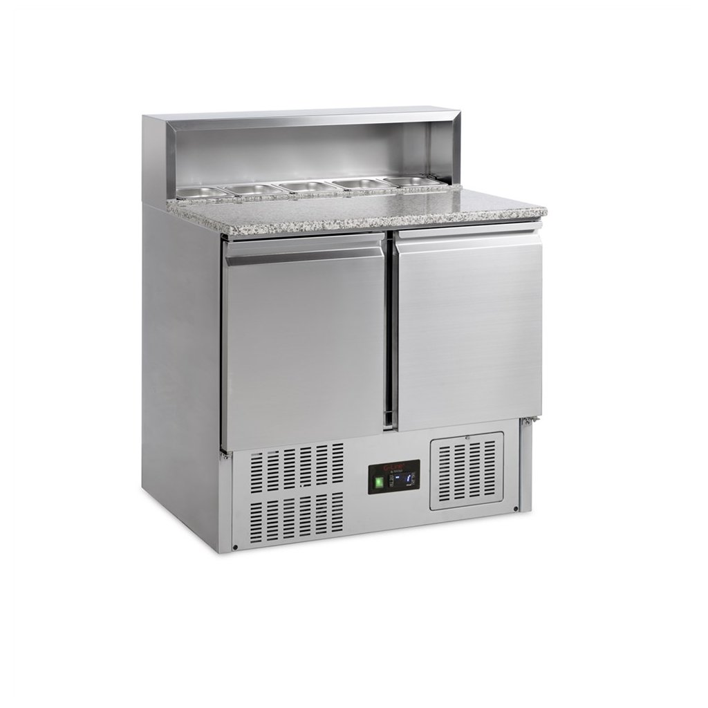Chladicí pizza stůlTento cenově výhodný stůl na pizzu ze série G-line je fantastický pro přípravu pizzy. Vše potřebné máte na dosah. Vyskládejte různé ingredience do gastronádob GN 1/6 a použijte vnitřní prostor pro skladování a snadné doplňování. Žulová deska stolu je ideální pro přípravu lahodného pizza těsta, protože zůstává chladná a těsto se tolik nelepí na desku stolu.Doplňkové parametry