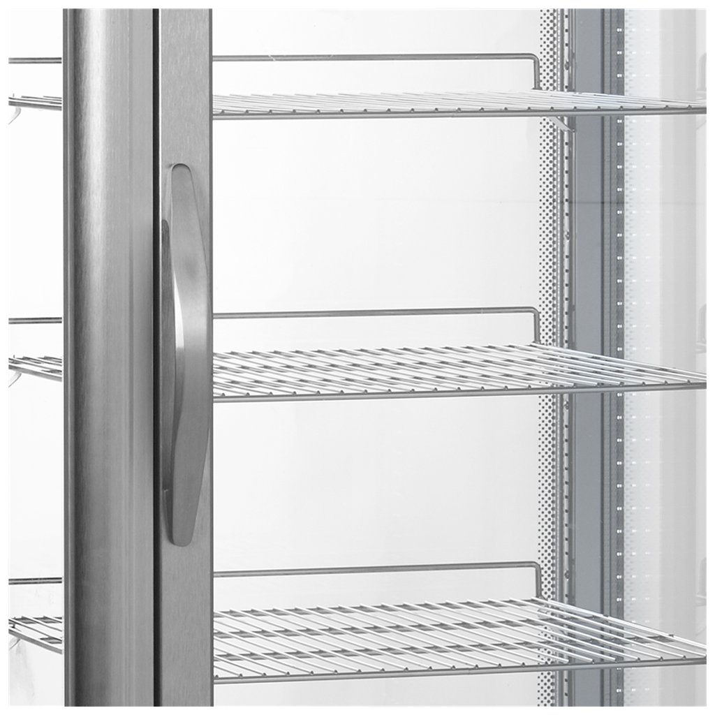 Chladicí vitrína panoramatickáChladicí vitrína TEFCOLD UPD 200 má všechny čtyři strany prosklené s dvojitým izolačním sklem. Výšku mezi roštovými policemi je možné změnit dle potřeby, o pojízdnost vitríny je postaráno díky 4 kolečkám, z čehož 2 jsou s brzdou.Doplňkové parametry