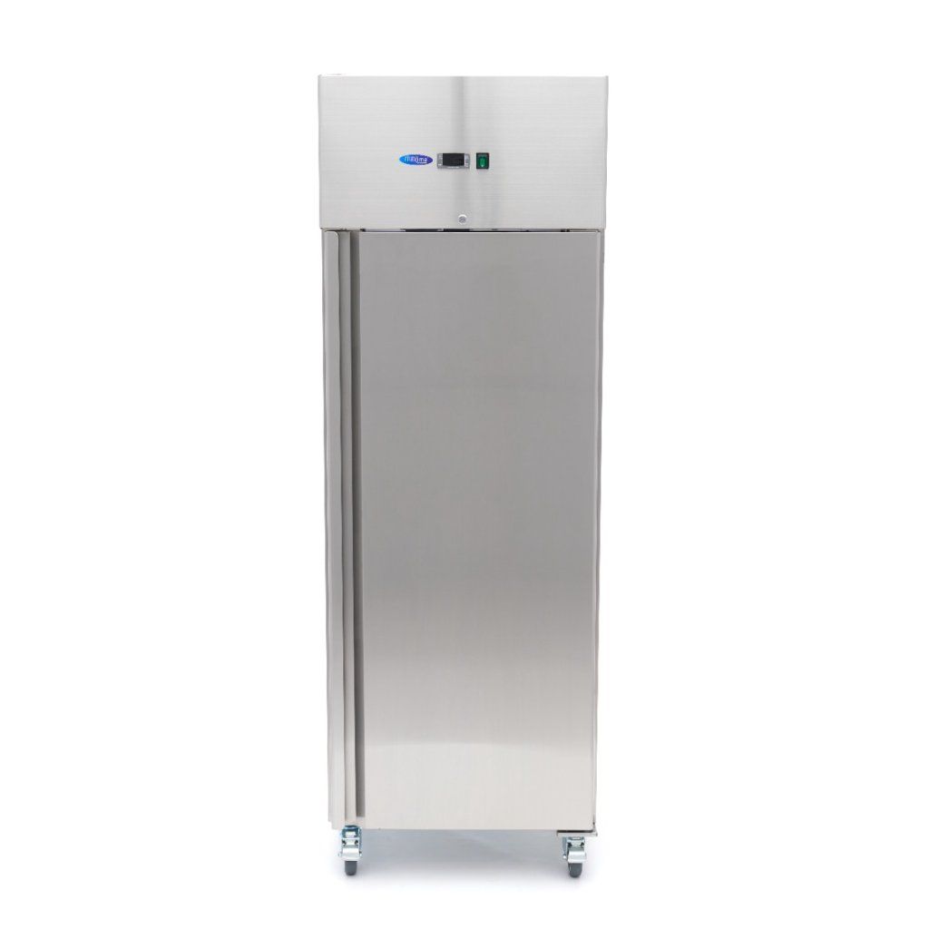 Tato chladnička je vyrobena z prvotřídní nerezavějící oceli, a to jak zvenku, tak zevnitř, a je navržena tak, aby odolala každodennímu profesionálnímu používání. Hladké povrchy a vyjímatelné police umožňují rychlé a efektivní čištění. Pravidelně otírejte gumové těsnění dveří a po čištění zajistěte důkladné vysušení všech částí, abyste dosáhli dlouhotrvajícího výkonu.