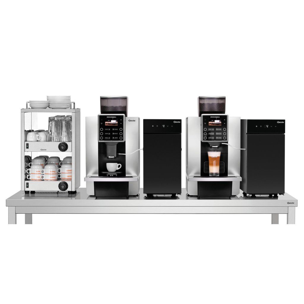 Praktická chladnička na mléko s bočními otvory pro připojení hadičky zajišťuje přímý přístup k vychlazenému mléku. Mléko je skladováno hygienicky a může být podle potřeby přímo odebíráno k přípravě cappuccina, café au lait nebo latte macchiata.