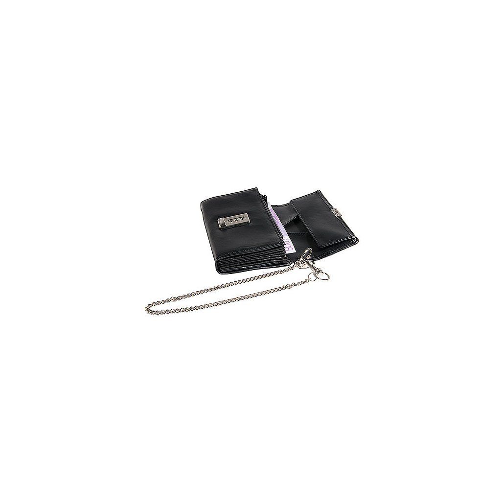 Číšnická peněženka z hladkého, tenkého kůži připomínajícího materiálu s dírkou na řetízek. 5 přihrádek na papírové peníze, kapsa na mince, kapsa na zip a zadní kapsa.Doplňkové parametry