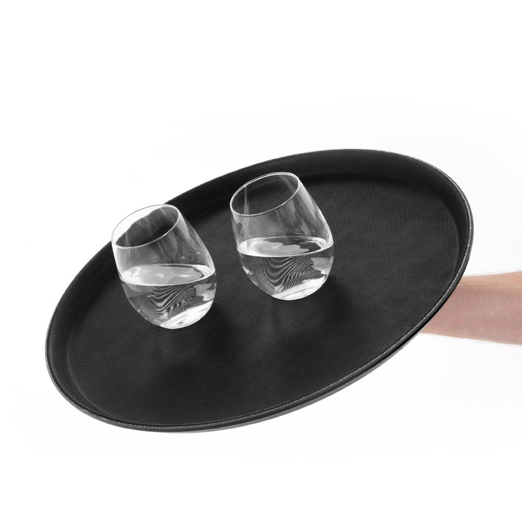 Číšnický tác, kulatý o průměru 405 mm. Protiskluzový povrch a boční okraj zjenodušují bezpečné přenášení. Černá barva.Doplňkové parametry