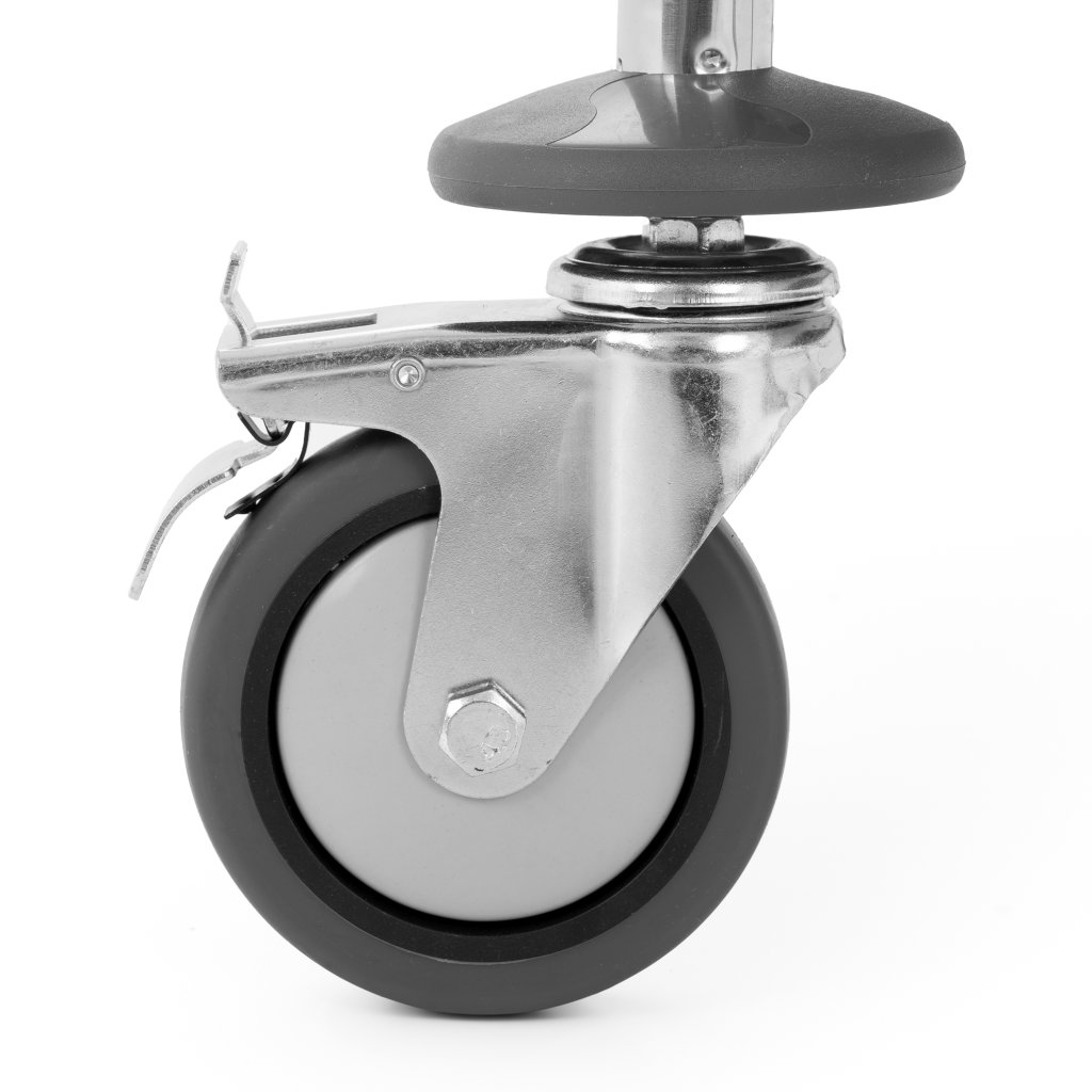 Číšnický vozík- 2-policový, maximální nosnost je 75 kg na patro- součásti 4 otáčecí gumové kolečka, 2 znich s brzdou- bez úchytů, možnost zakrytí ubrusem- vozík se odesílá rozloženýDoplňkové parametry