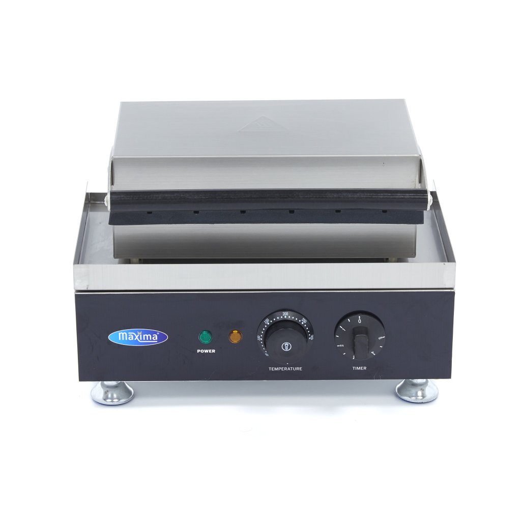 Řemeslný kukuřičný párek je jedinečný, když těsto pochází také z vaší kuchyně. S tímto vaflovačem můžete snadno a rychle připravit šest lahodných kukuřičných párků. Díky výřezu v zásobníku můžete do každého kukuřičného párku vložit tyčinku. Takto můžete podávat lahodné jídlo na tyčince. Tento vysoce kvalitní vaflovač je vhodný pro intenzivní každodenní používání ve staromódních cukrárnách, kavárnách a restauracích. Hliníkový zásobník má nepřilnavý povrch, takže se kukuřičné párky nelepí. S extra velkým vaflovačem můžete najednou připravit až šest kukuřičných párků.