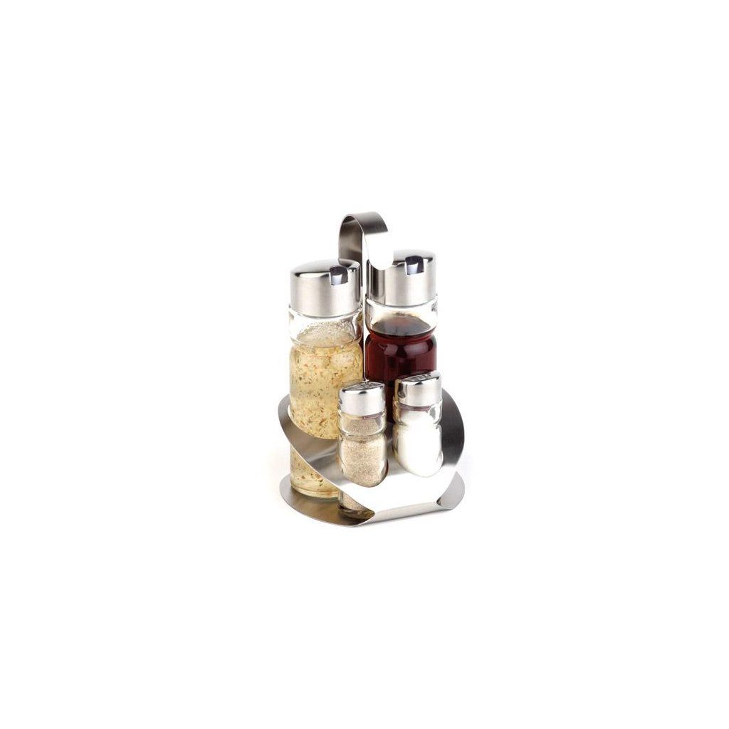 Sada kořenek ze satinované nerezové oceli. Skleněné nádoby na sůl, pepř, olej a ocet s víčkem z nerezové oceli. Lze mýt v myčce nádobí.Buďte první, kdo napíše příspěvek k této položce.