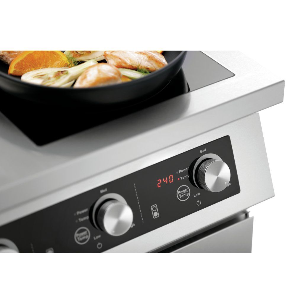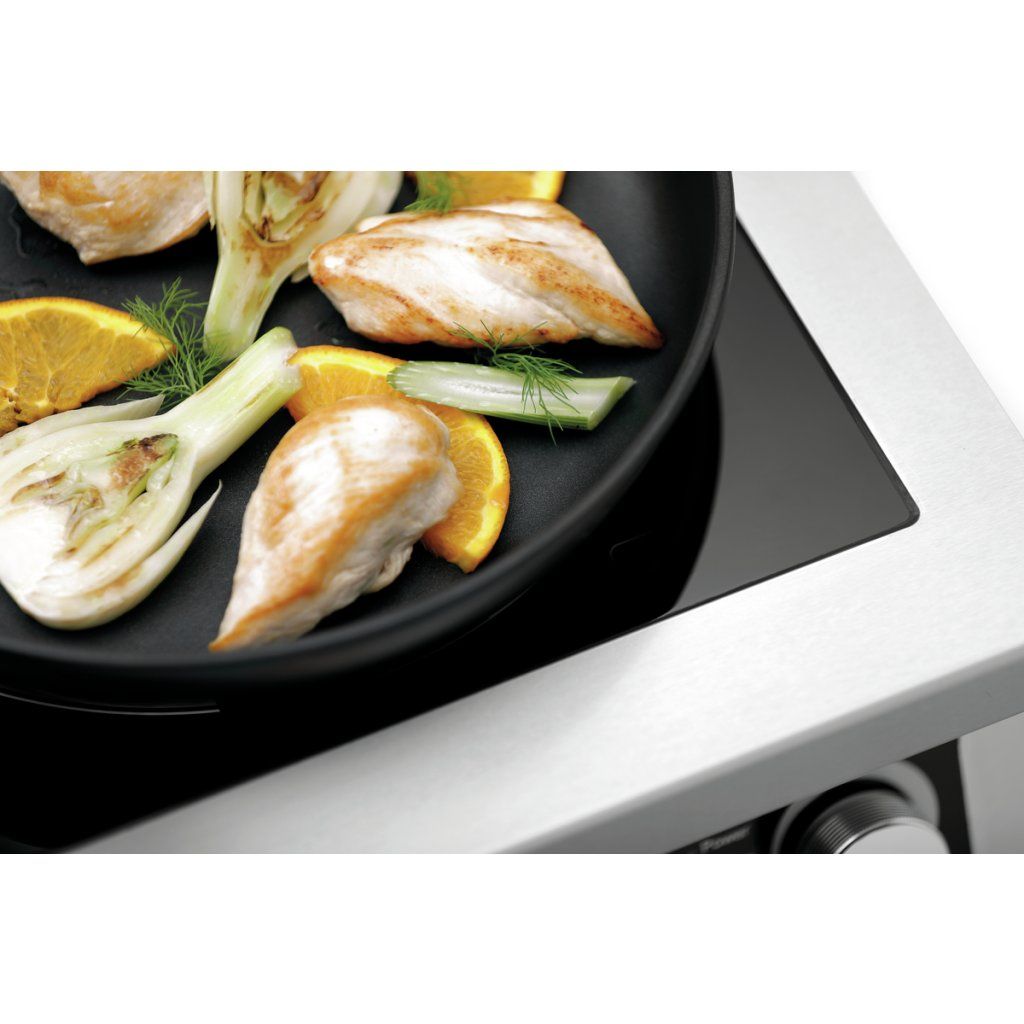 Čtyřplotýnkový indukční vařič GU je spolehlivým partnerem do profesionální kuchyně a nabízí dostatek výkonu pro intenzivní provoz. Dělená skleněná varná plocha poskytuje komfortní pracovní prostor a celkový výkon 17 kW lze řídit pomocí výkonových stupňů nebo nastavení teploty.