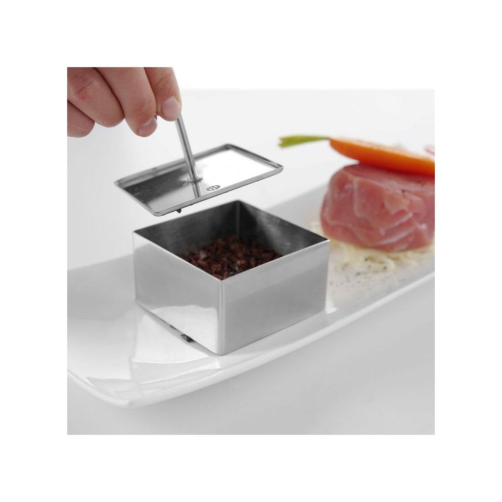 Kuchařsko-cukrářská obruč vyrobená z nerezové oceli 18/0 je vhodná pro tvarování těsta a potravin. Vhodná do myčky. Foto je pouze ilustrační, přitlačný poklop je potřeba objednat zvlášť.Doplňkové parametry