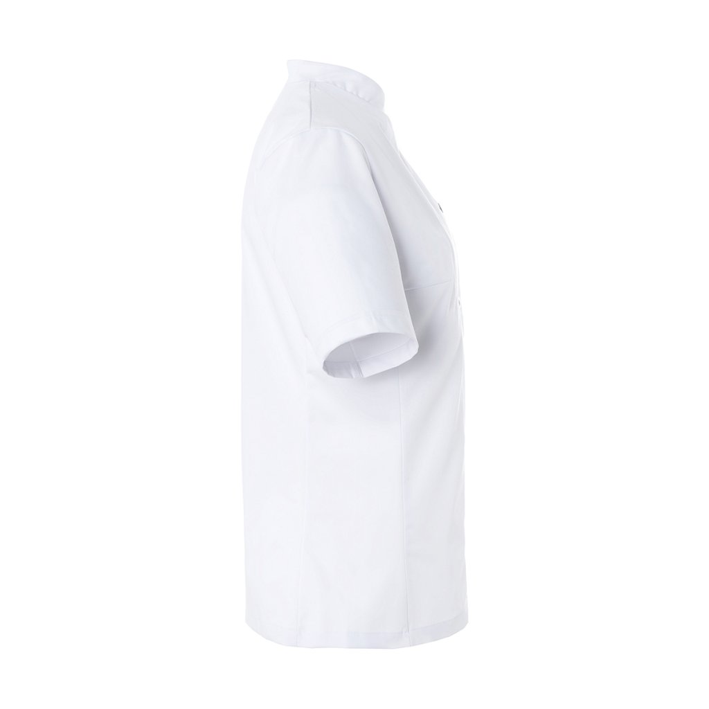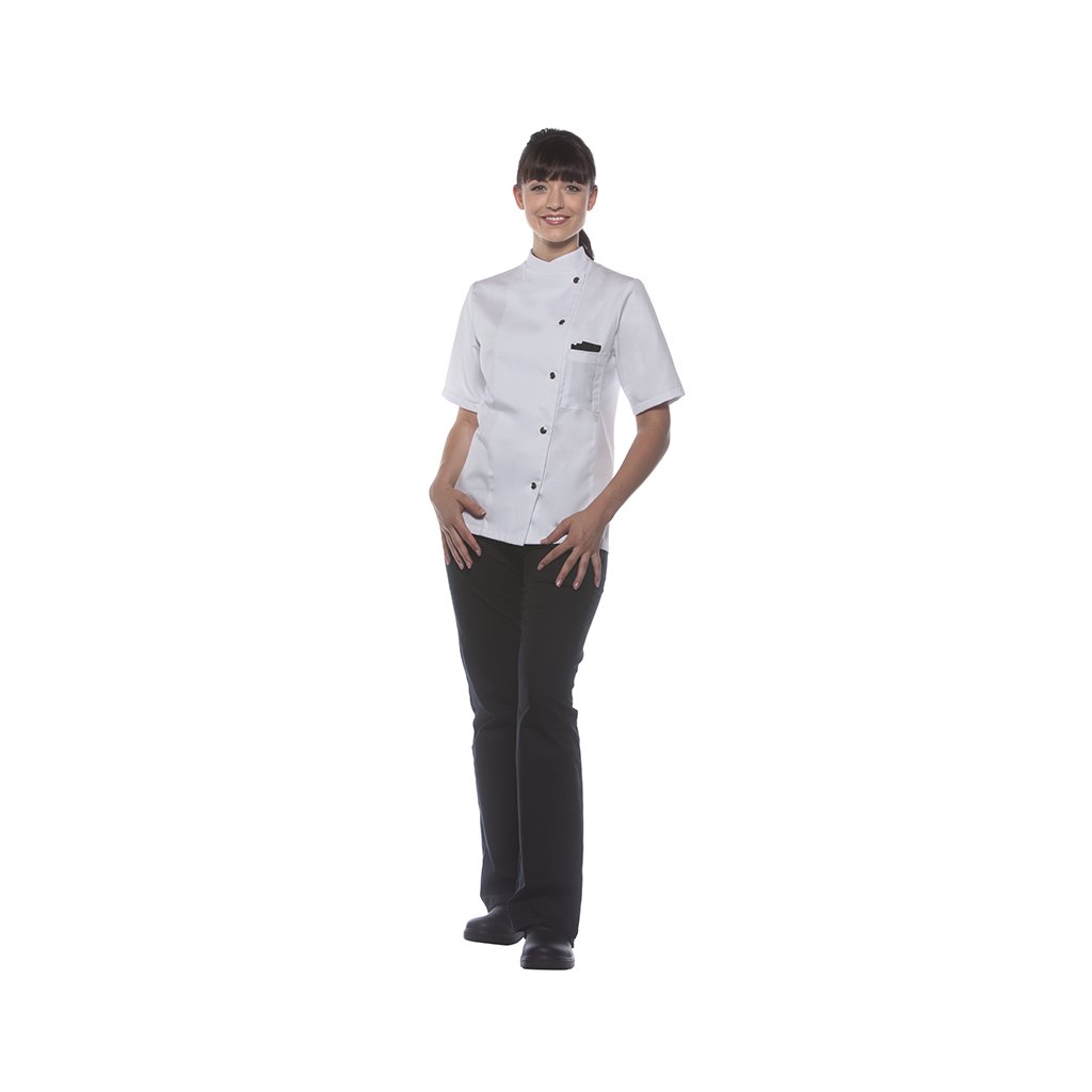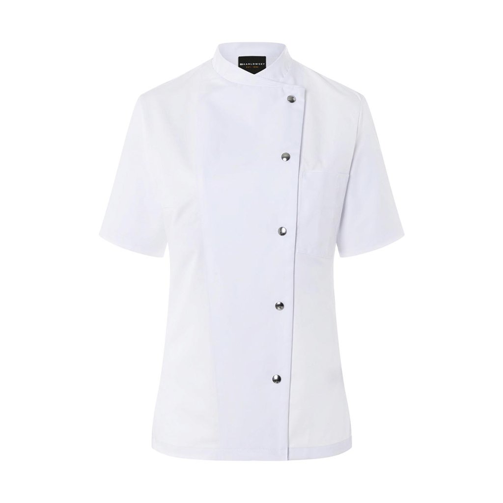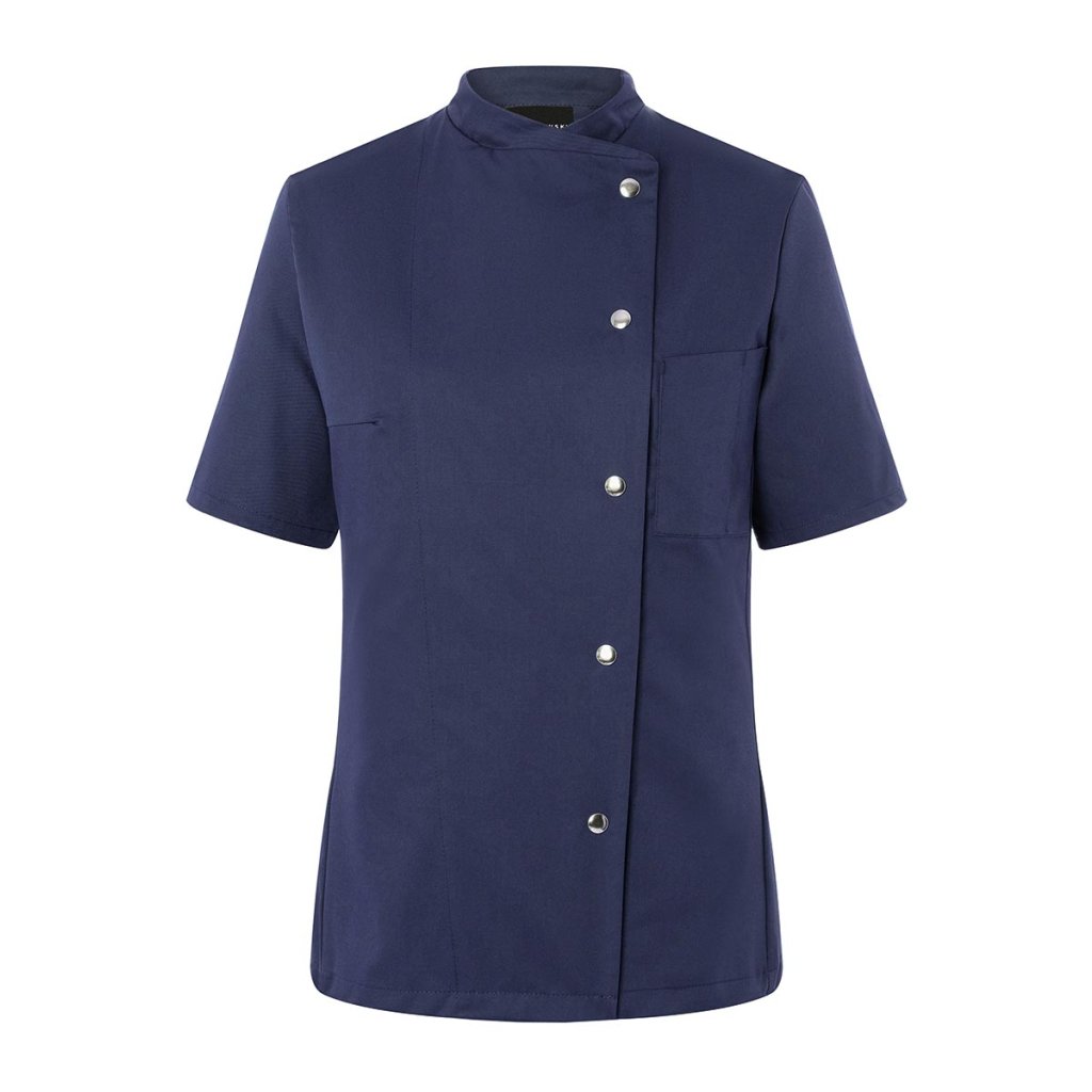 | keprová vazba, 65 % polyester / 35 % bavlna, 215 g/m² | vysoce kvalitní, předsrážená, stálobarevná, snadno se udržuje | | kuchařská bunda pro dámy s krátkými rukávy a přiléhavým střihem | prsní záševky, boční švy vpředu a vzadu | našitá, šikmá náprsní kapsa na levé straně (min. 7 x 13 cm) s kapsou na pero (2 x 13 cm) | sako s 5 knoflíky a druky | vhodná pro průmyslové praní | odpovídající výrobek: Kuchařská bunda Gustav - JM 15 (číslo výrobku výrobce)Doplňkové parametry