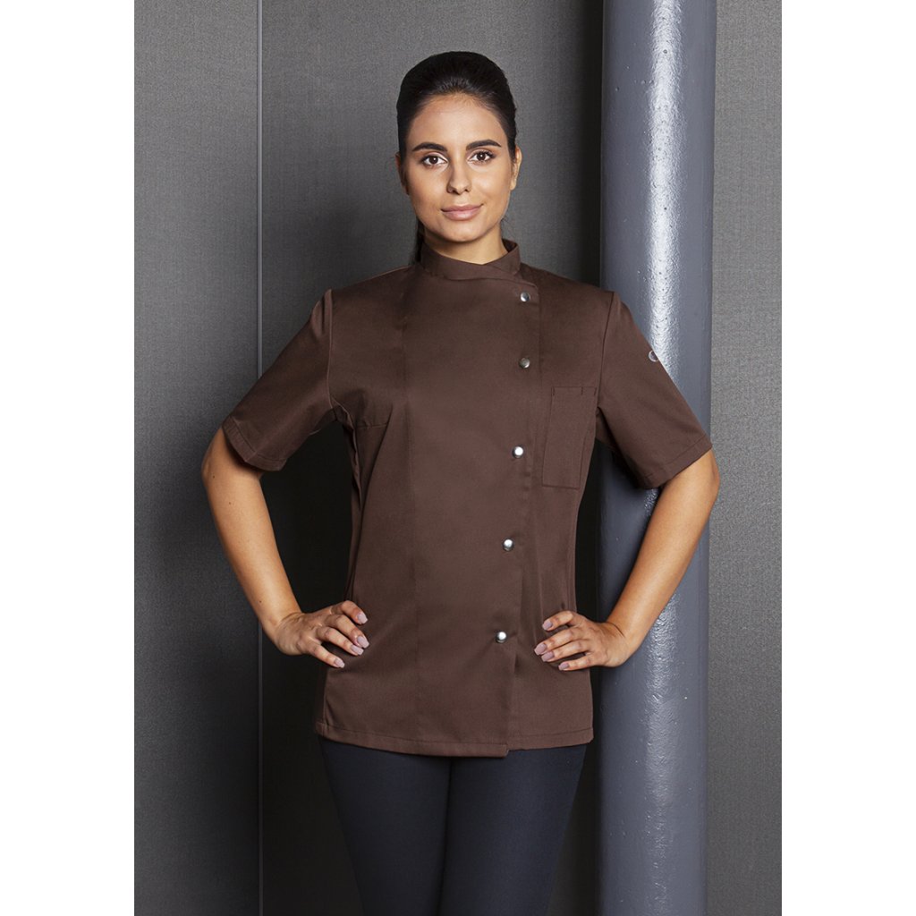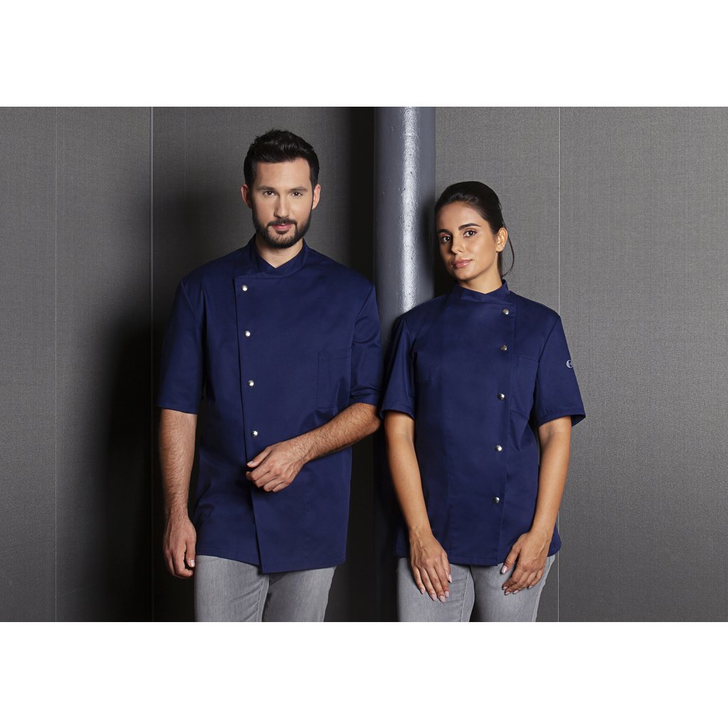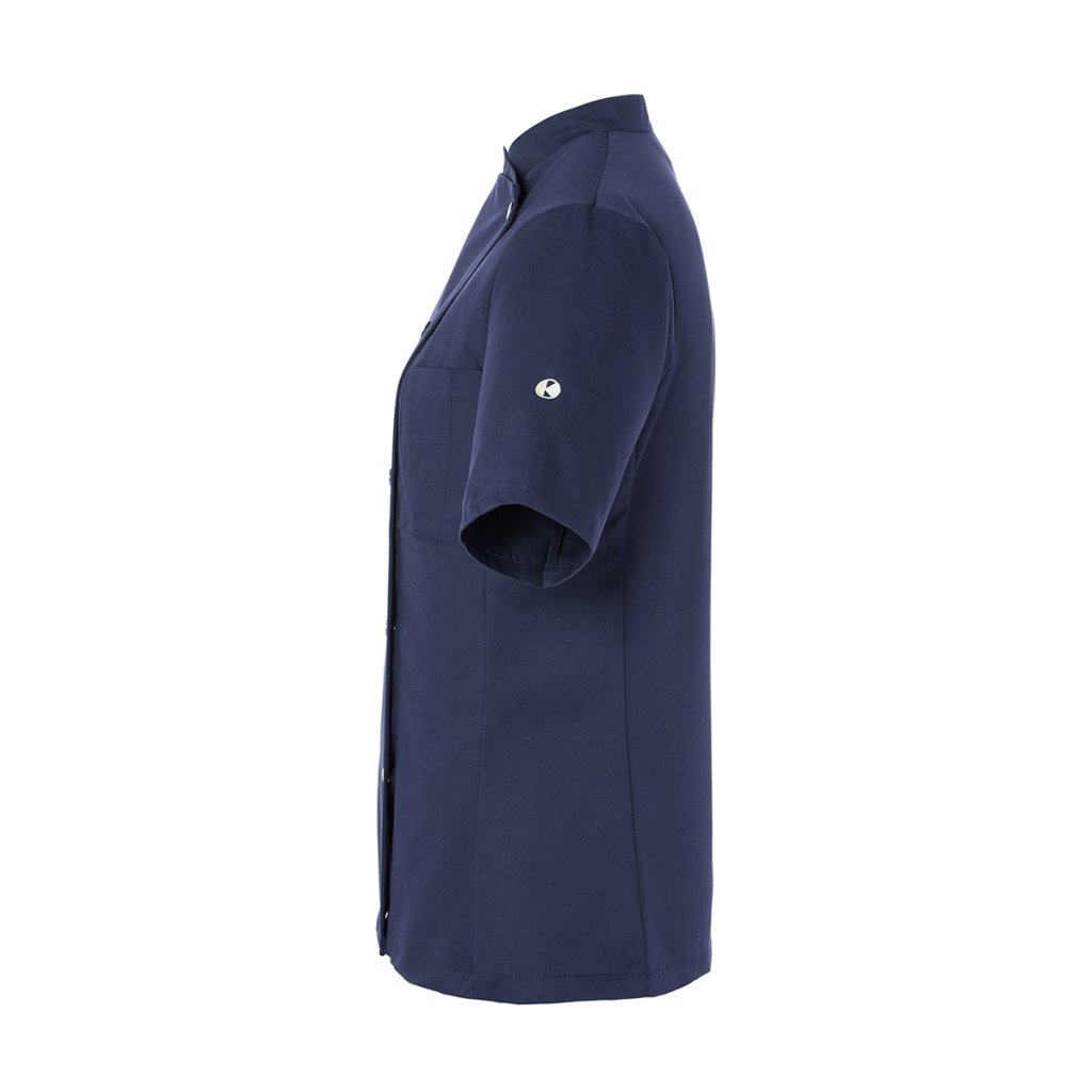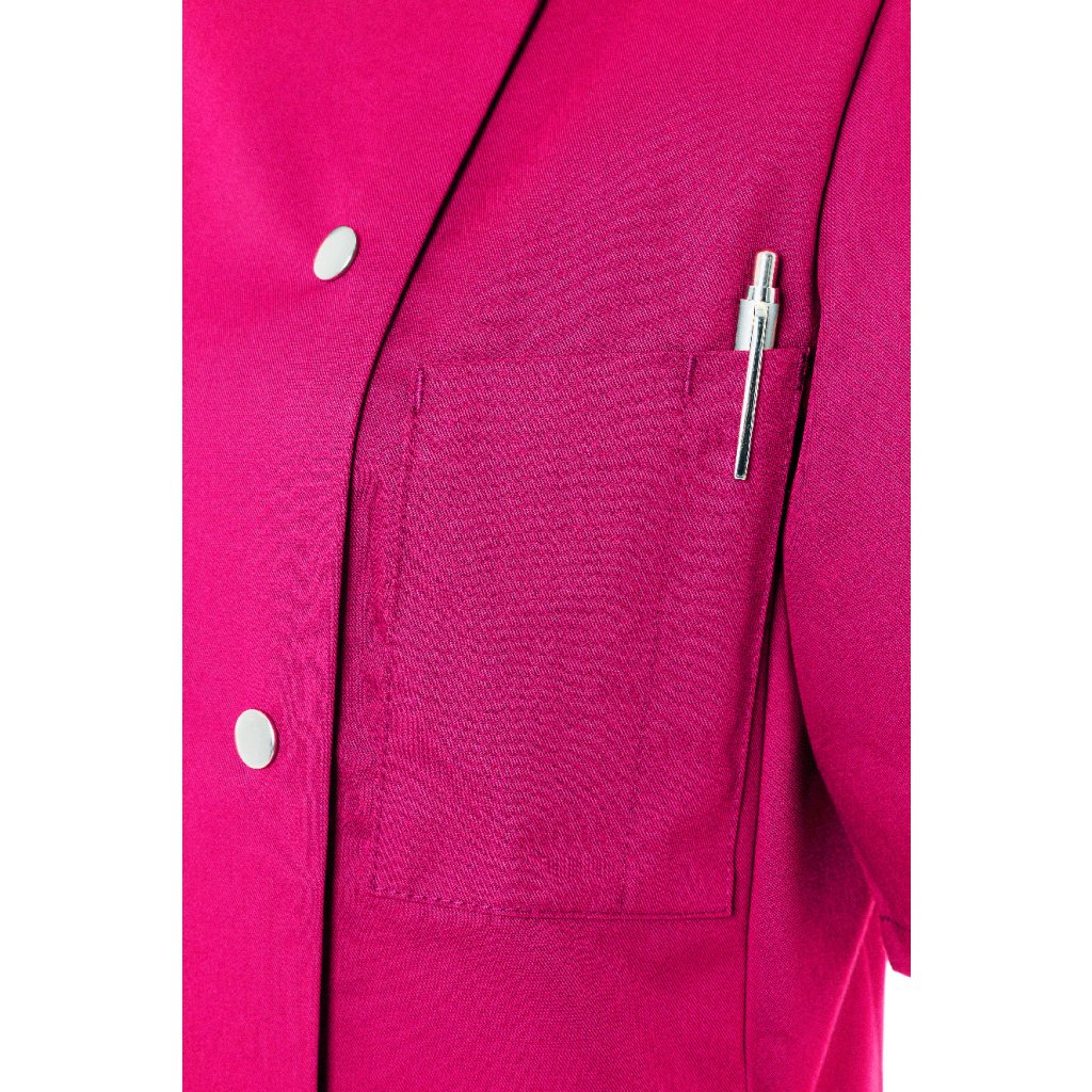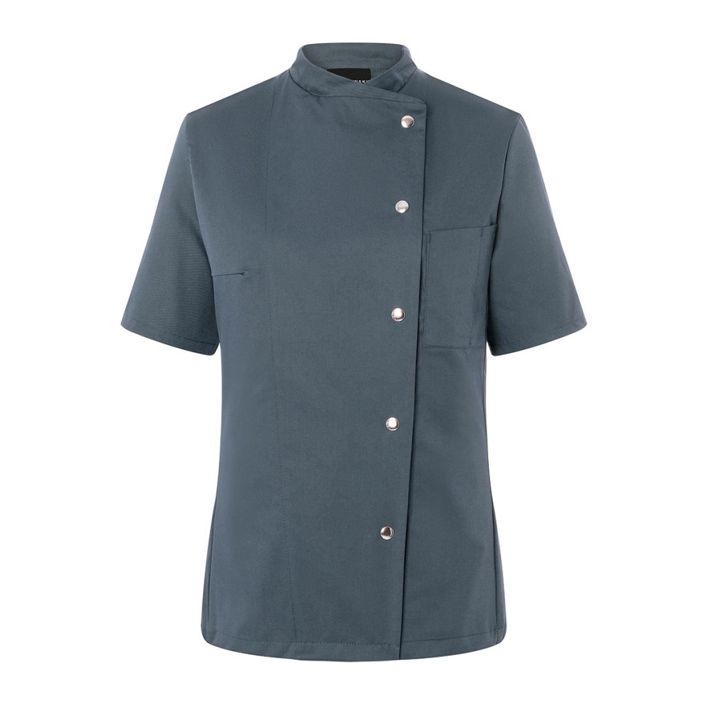 | keprová vazba, 65 % polyester / 35 % bavlna, 215 g/m² | vysoce kvalitní, předsrážená, stálobarevná, snadno se udržuje | | kuchařská bunda pro dámy s krátkými rukávy a přiléhavým střihem | prsní záševky, boční švy vpředu a vzadu | našitá, šikmá náprsní kapsa na levé straně (min. 7 x 13 cm) s kapsou na pero (2 x 13 cm) | sako s 5 knoflíky a druky | vhodná pro průmyslové praní | odpovídající výrobek: Kuchařská bunda Gustav - JM 15 (číslo výrobku výrobce)Doplňkové parametry