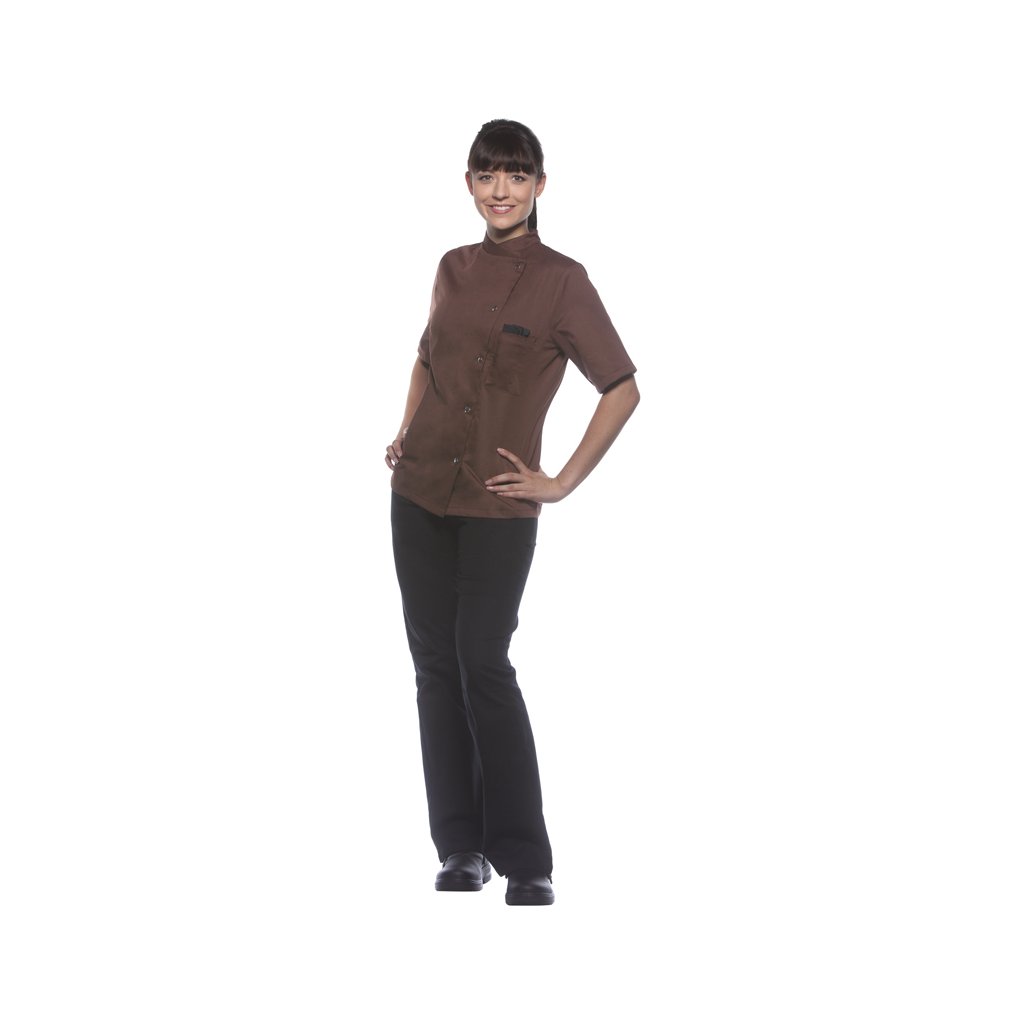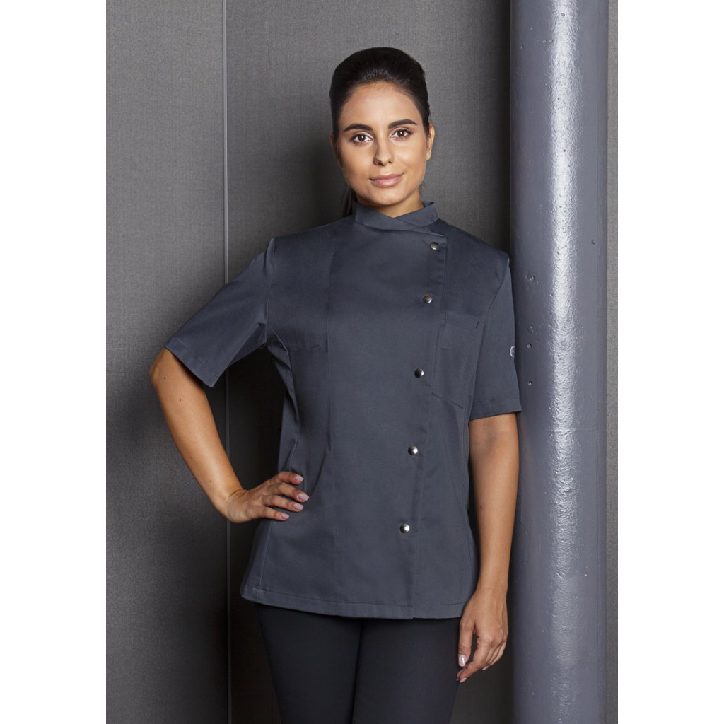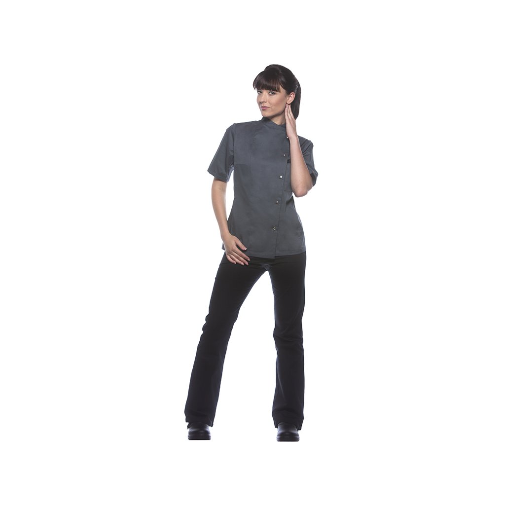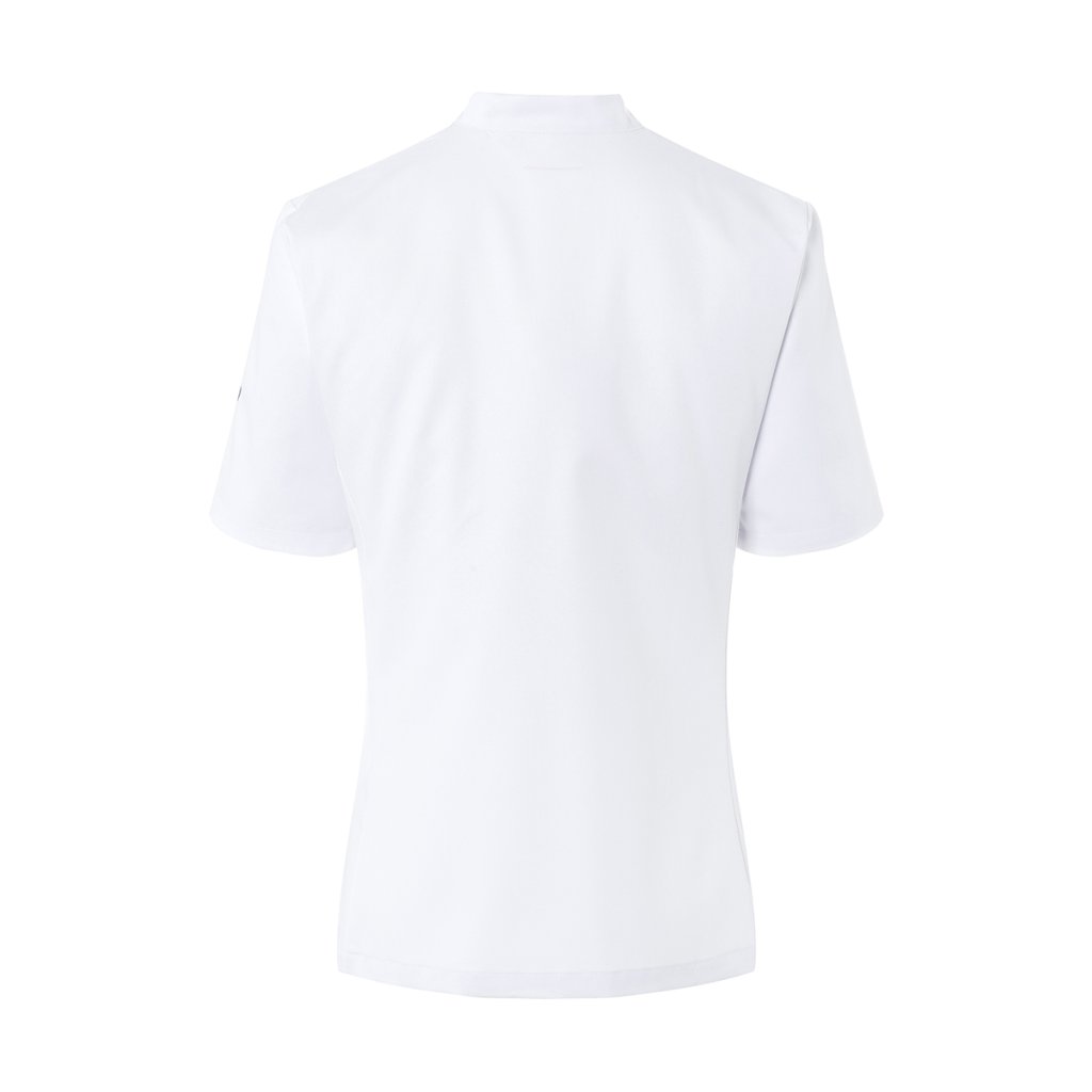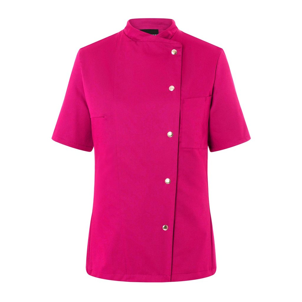 | keprová vazba, 65 % polyester / 35 % bavlna, 215 g/m² | vysoce kvalitní, předsrážená, stálobarevná, snadno se udržuje | | kuchařská bunda pro dámy s krátkými rukávy a přiléhavým střihem | prsní záševky, boční švy vpředu a vzadu | našitá, šikmá náprsní kapsa na levé straně (min. 7 x 13 cm) s kapsou na pero (2 x 13 cm) | sako s 5 knoflíky a druky | vhodná pro průmyslové praní | odpovídající výrobek: Kuchařská bunda Gustav - JM 15 (číslo výrobku výrobce)Doplňkové parametry